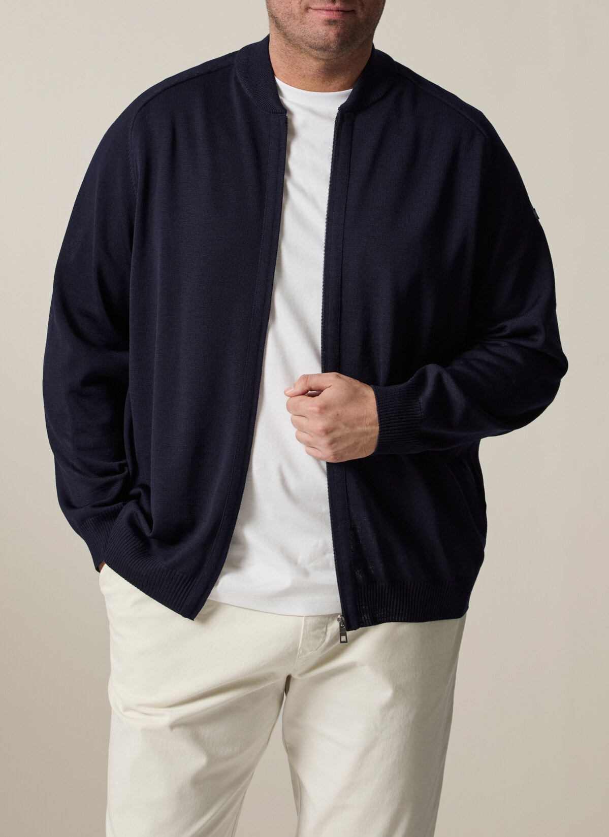 Cleanes Design trifft auf hochwertige Merinowolle! Strickblouson in großer Größe – ein Klassiker für jeden Tag. Material: Merinowolle hat einen hohen Tragekomfort, ist feuchtigkeitsregulierend, geruchsneutral und besitzt eine wärmende sowie temperaturausgleichende Funktion. Haptik: cleanes, klassisches Maschenbild mit weichem Wollgriff. Hochwertige Verarbeitung mit handgekettelten Nähten und elastischen Bündchen. Tragegefühl: leicht und angenehm wärmend.