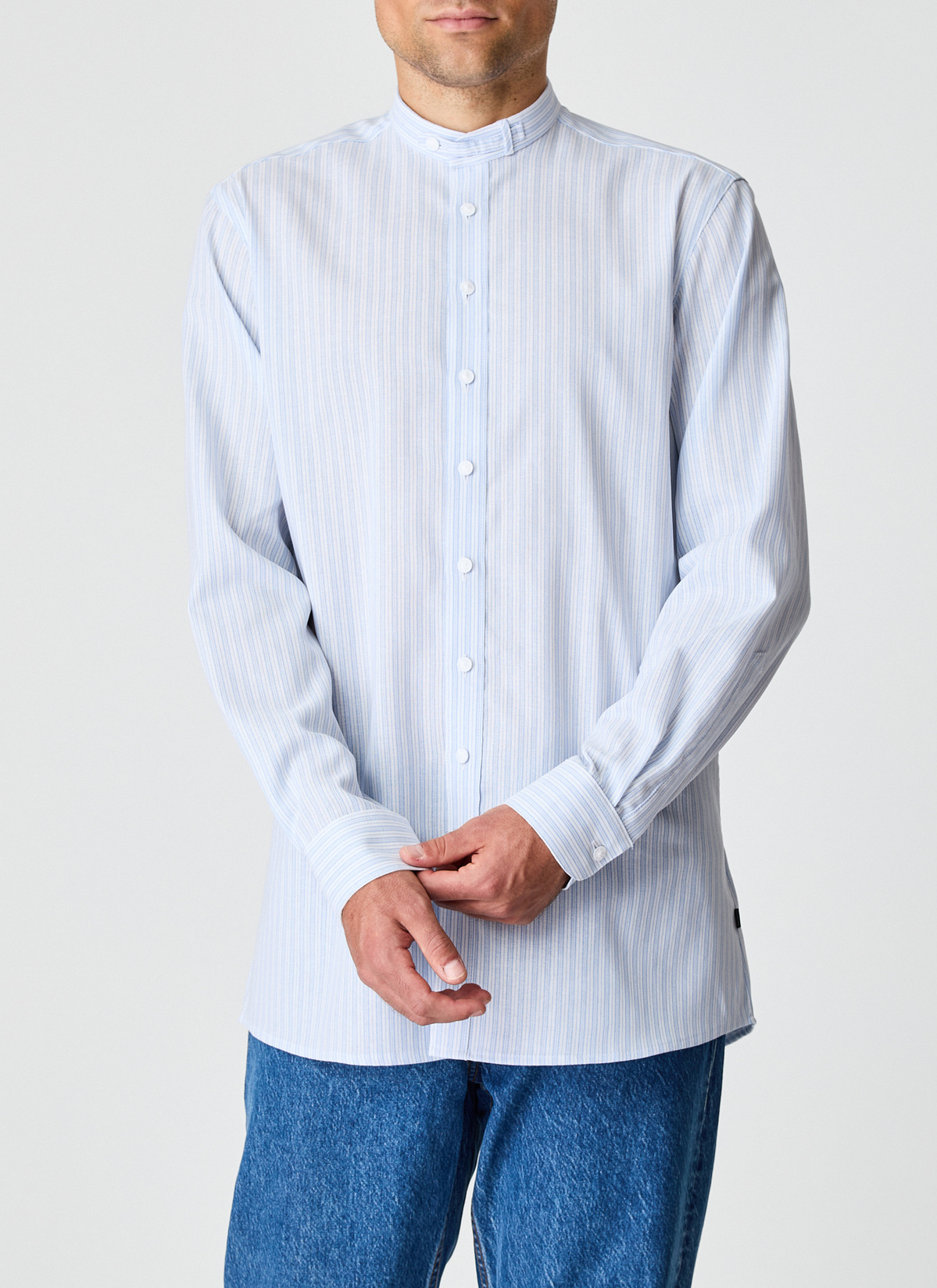 Dieses stilvolle Herrenhemd verbindet klassische Details mit modernem Komfort. Gefertigt aus 100% hochwertiger Baumwolle bietet es ein besonders angenehmes Tragegefühl und ist zugleich pflegeleicht. Der elegante Stehkragen sorgt für eine markante, aber dezente Ausstrahlung und lässt sich vielseitig kombinieren. Das feine Streifenmuster verleiht dem Hemd eine zeitlose Note und wirkt gleichzeitig gepflegt und modisch. Dank des bequemen Regular Fit sitzt es angenehm am Körper und eignet sich hervorragend für Alltag und besondere Anlässe.