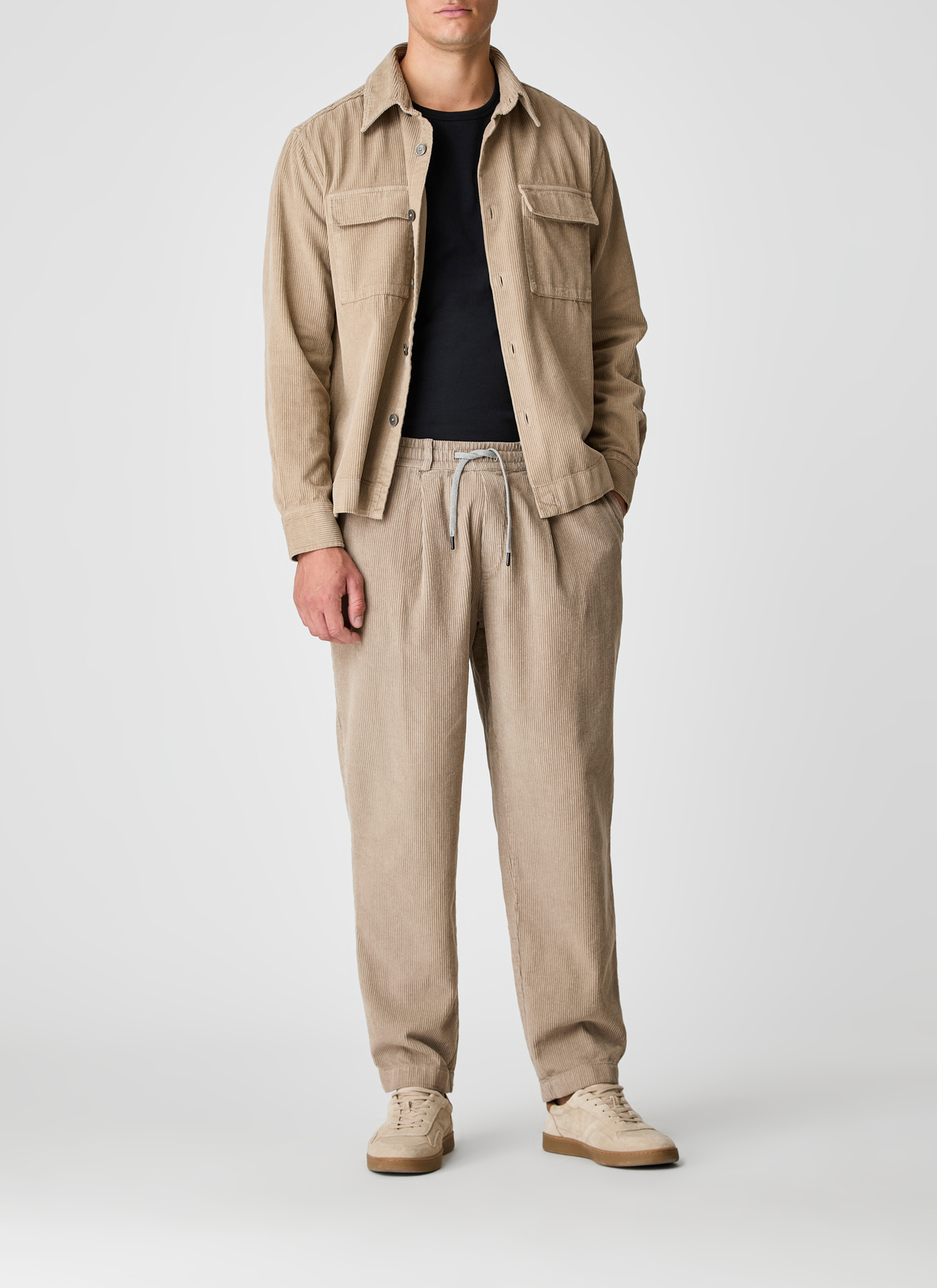 Diese komfortable Herrenhose aus weichem Kord mit feiner Flanelloberfläche bietet eine angenehme Haptik und einen stilvollen, gepflegten Look. Gefertigt aus 100 % reiner Baumwolle, ist sie atmungsaktiv und überzeugt durch ihre hochwertige Verarbeitung. Der elastische Gummibund mit Bindebändern sorgt für zusätzlichen Tragekomfort und eine flexible Passform. Seitliche Eingriffstaschen und dezente Bundfalten unterstreichen den entspannten Charakter der Hose, während der Regular Fit eine klassische Silhouette schafft. Ein vielseitiges Kleidungsstück für Männer, die Komfort und Qualität souverän kombinieren möchten. Kombiniert im Set mit der passenden Jacke (Art. Nr.: 727200) wirkt der Look besonders modern.