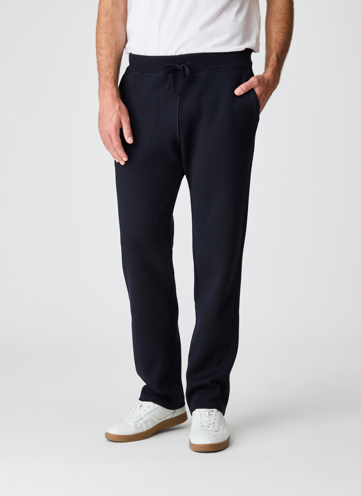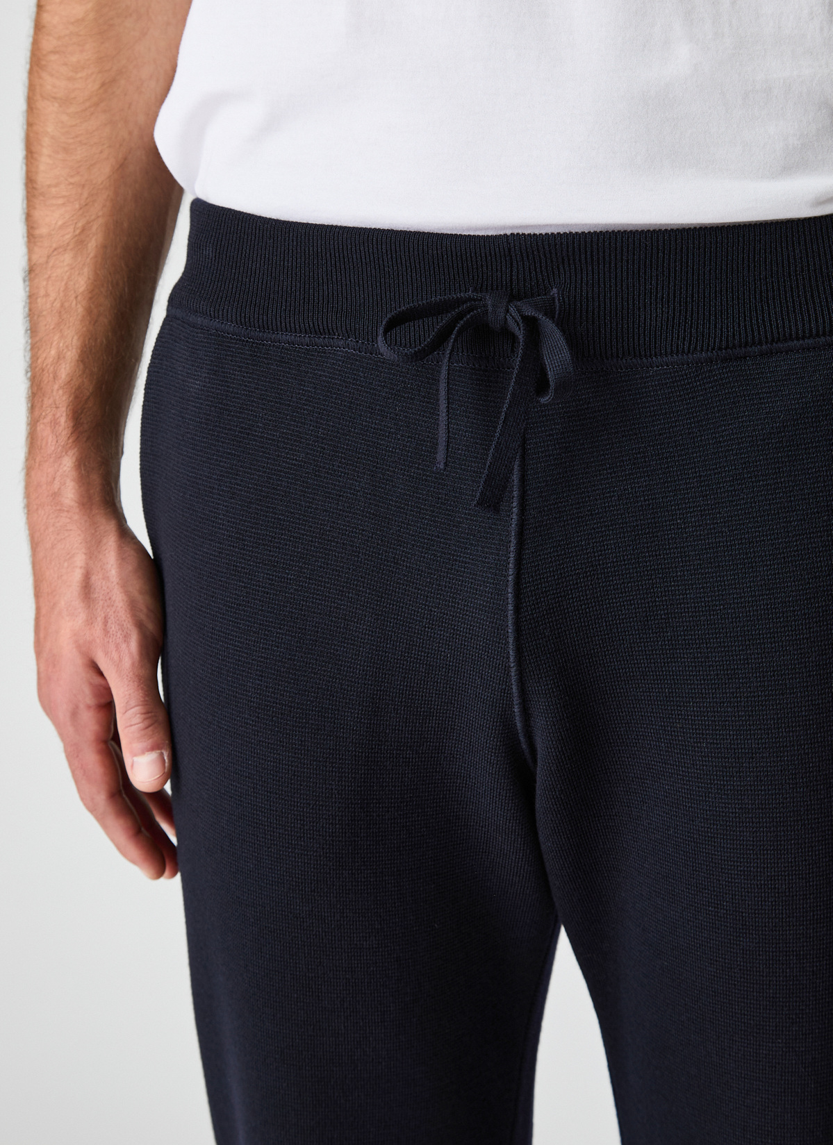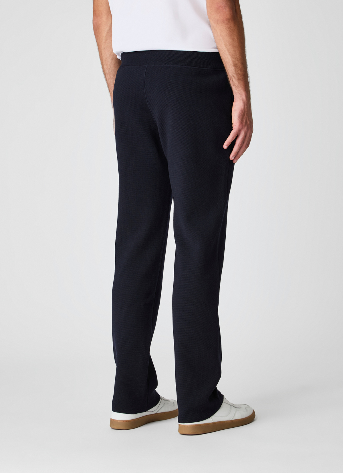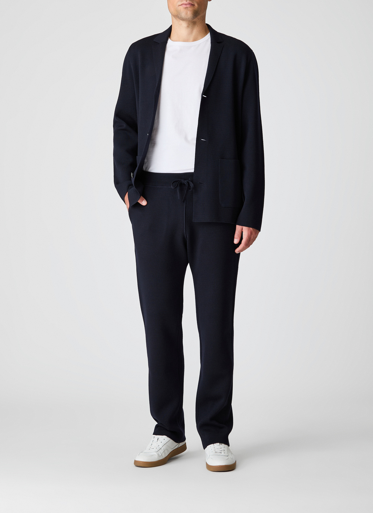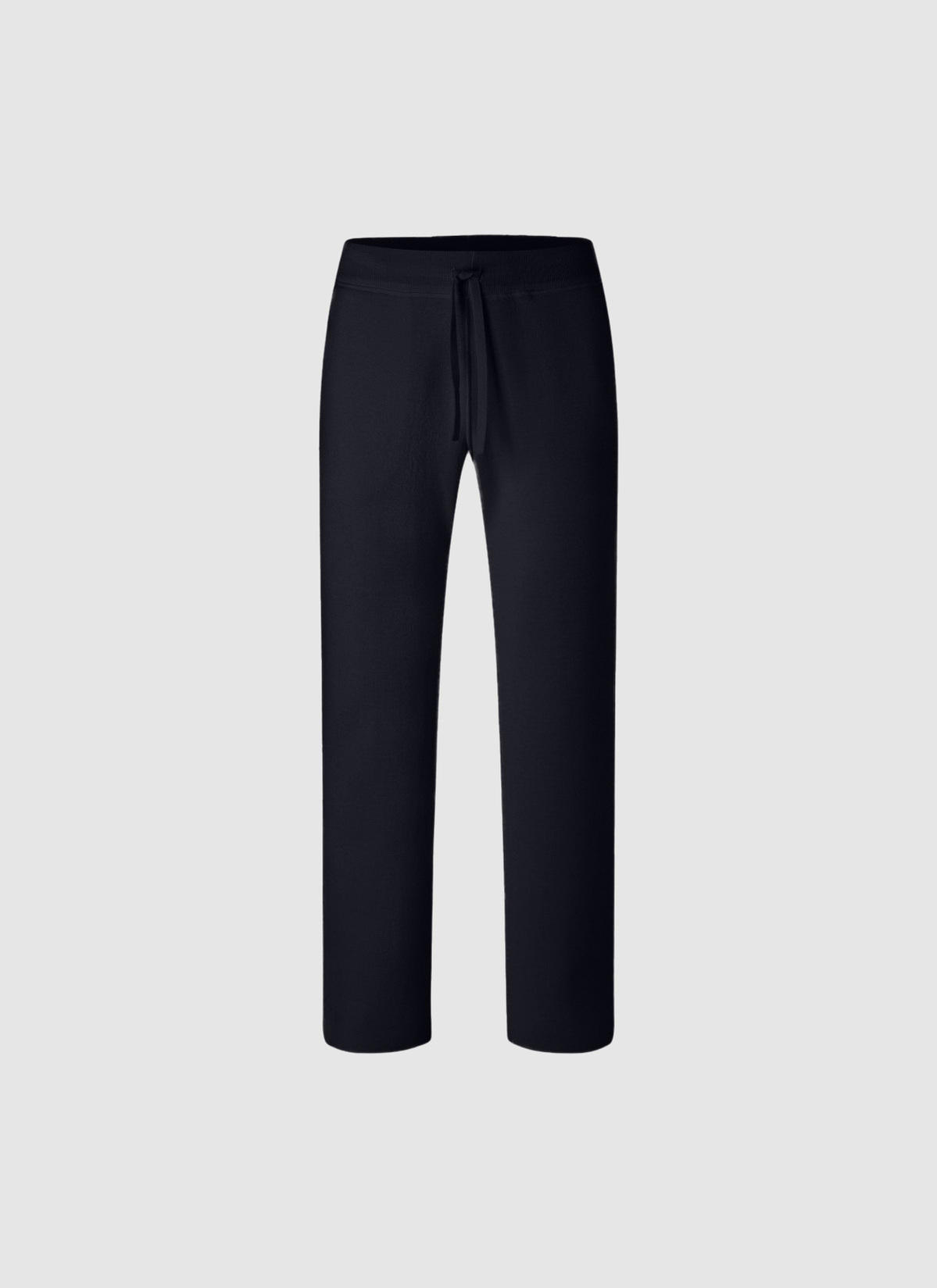 Diese Herrenhose vereint eine entspannte Silhouette mit hochwertigem Material und präziser Verarbeitung. Der elastische Bund mit Bindebändern sorgt für einen bequemen Sitz und eine lässige Optik. Seitliche Eingriffstaschen und eine aufgesetzte Tasche auf der Rückseite ergänzen das zurückhaltende Design mit funktionalen Details. Gefertigt aus 100% Merinowolle überzeugt die Hose durch ihre weiche, temperaturregulierende Qualität und eine glatte, angenehme Haptik. Die Verarbeitung ist formstabil und langlebig, ideal für entspannte Outfits mit Anspruch an Stil und Komfort.