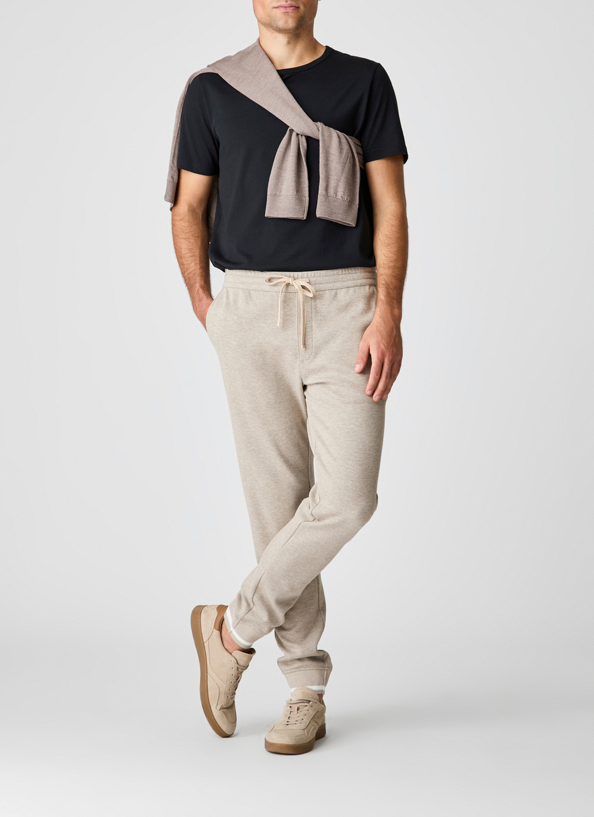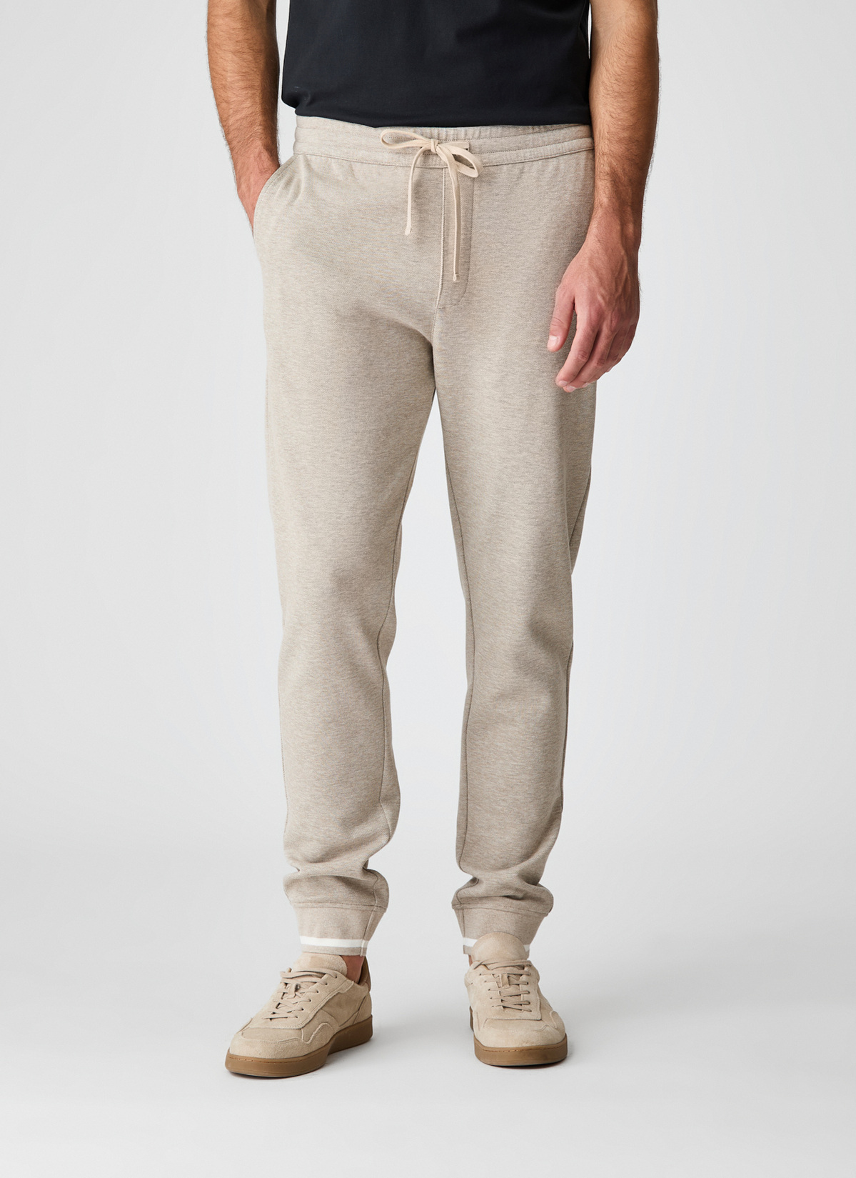 Lässig, bequem und vielseitig kombinierbar: Diese Hose im Regular Fit bietet entspannten Tragekomfort für jeden Tag. Der elastische Gummibund mit Bindeschnüren sorgt für einen flexiblen Sitz und lässt sich individuell anpassen. Seitliche Eingriffstaschen und eine Leistentasche auf der Rückseite verleihen dem sportlichen Look eine zurückhaltende Eleganz. Die weiche Baumwollmischung fühlt sich angenehm auf der Haut an und ist zugleich pflegeleicht. Eine moderne Alltagsbegleiterin für Männer, die Komfort und Stil schätzen. Kombiniert mit der passenden Jacke wirkt der Look besonders modern (Art.Nr.: 636801)