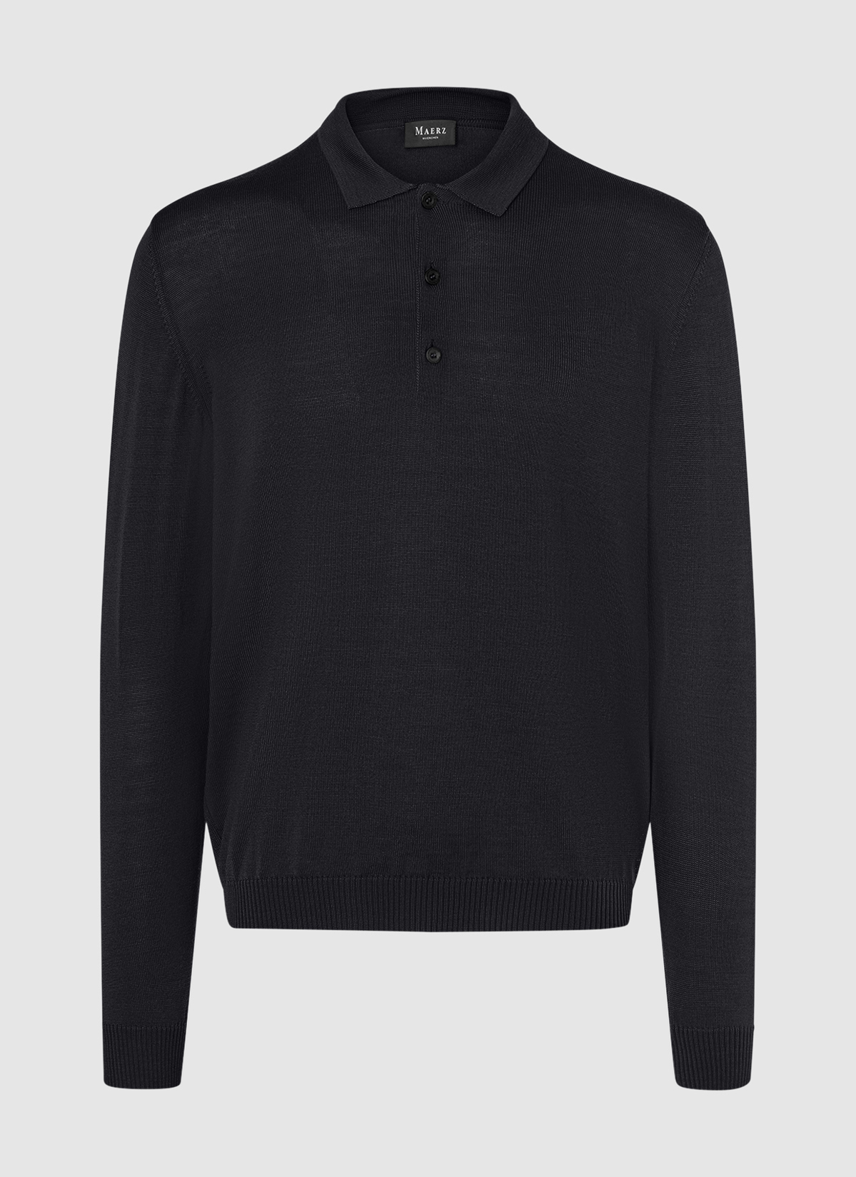 MAERZ Herren Kleidung Polokragenpullover|100% Merinowolle | Black