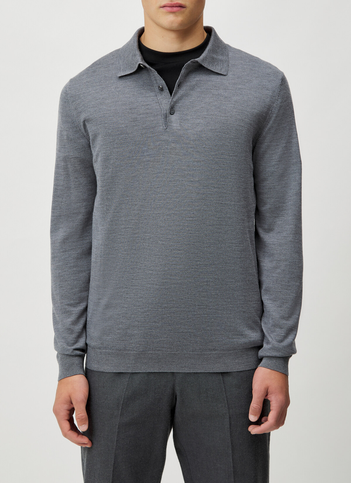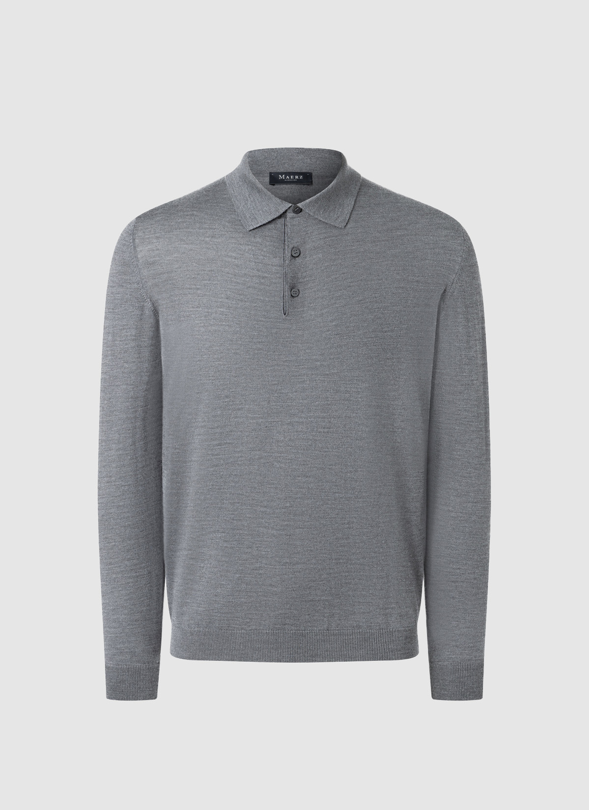 MAERZ Herren Kleidung Polokragenpullover|merino-seide-cashmere | Grey Rock