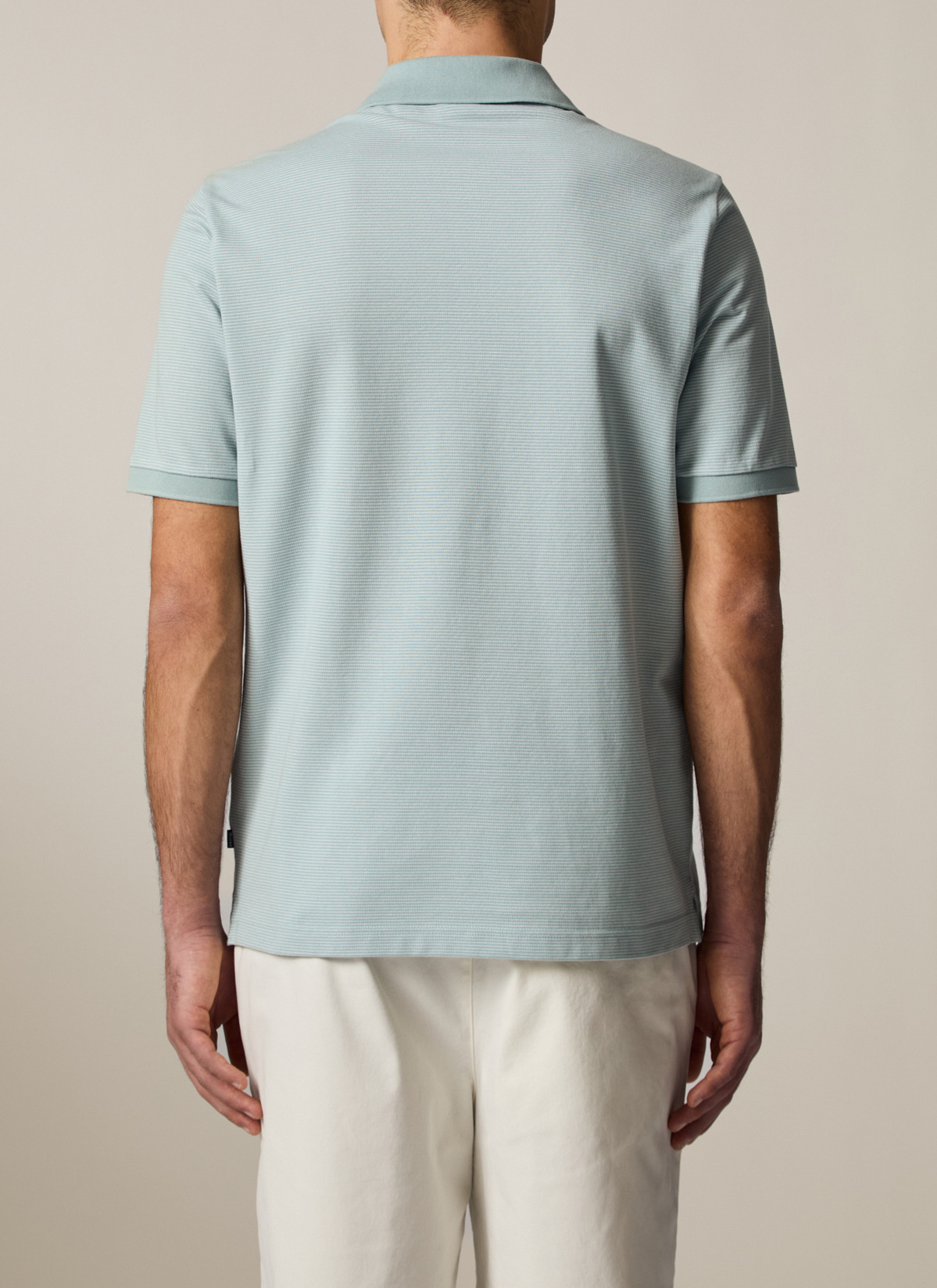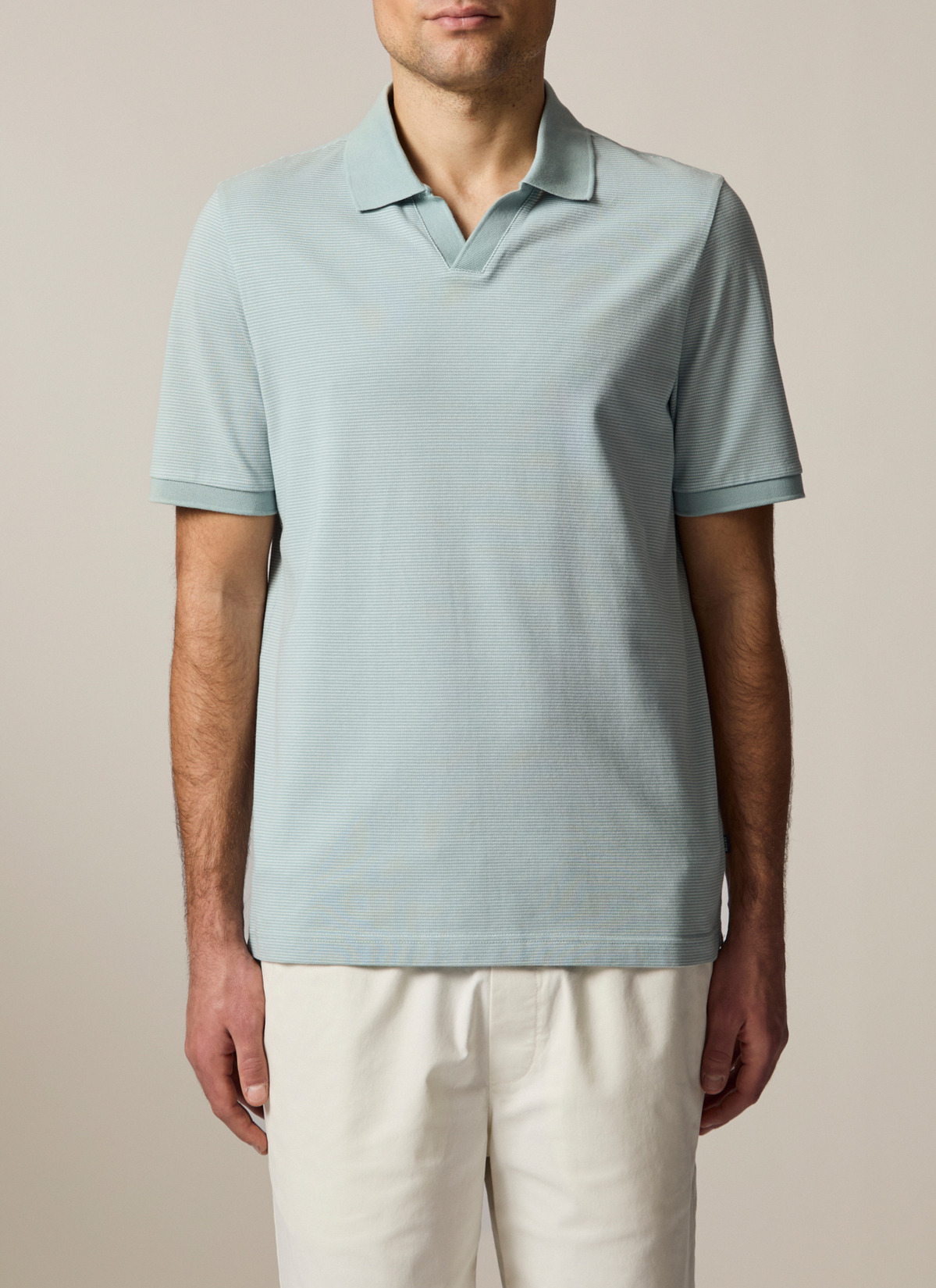 Das Polo zeigt sich im Regular Fit mit dezentem, offenem V-Ausschnitt. Material: Gefertigt aus hochwertiger Baumwolle bietet es eine angenehme Atmungsaktivität und hohen Tragekomfort. Optik: Das feine Streifenmuster verleiht dem Polo eine moderne und gleichzeitig zurückhaltende Ausstrahlung. Haptik: Die Baumwolle fühlt sich weich und angenehm auf der Haut an. Styling-Tipp: Kombiniert mit einer schlichten Chino oder Jeans entsteht ein klassischer, dennoch zeitgemäßer Look.