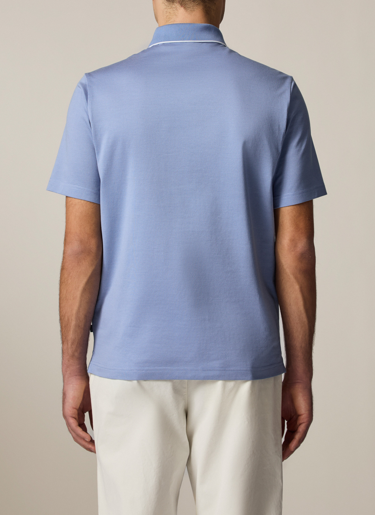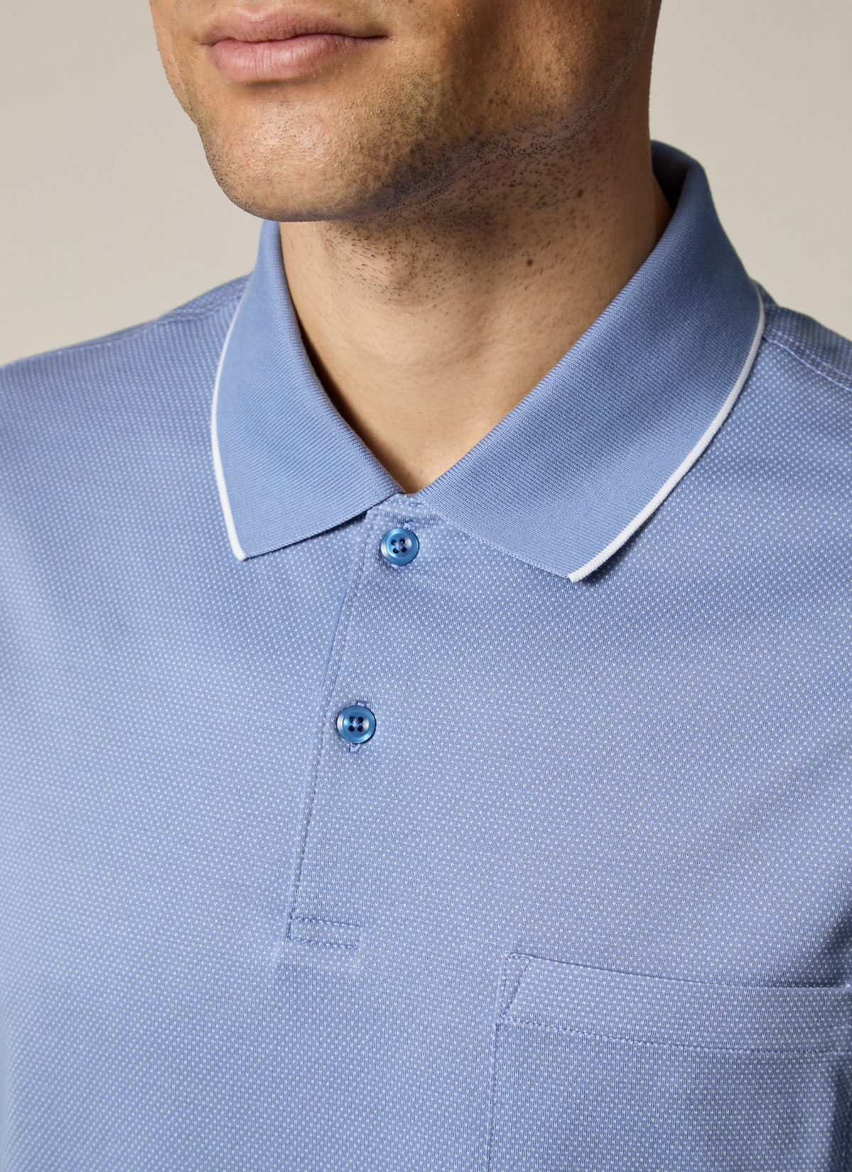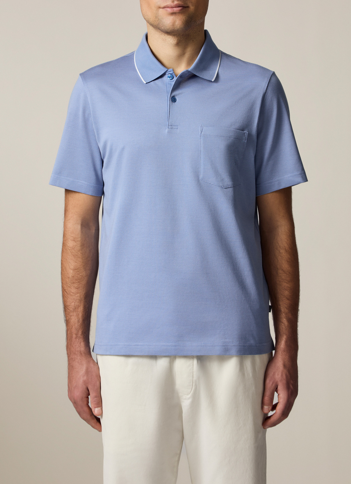 Das Polo zeigt sich im Regular Fit mit farblich abgehobenem Polokragen. Material: Gefertigt aus hochwertiger, merzerisierter Baumwolle ist das Polo edel glänzend und bietet hervorragende Atmungsaktivität. Optik: Das elegante Jacquard Muster und die dezent strukturierte Oberfläche verleihen dem Polo einen individuellen Look. Haptik: Die Baumwolle fühlt sich angenehm glatt und äußerst komfortabel auf der Haut an. Styling-Tipp: kombiniert mit einer farblich passenden Hose entsteht ein besonders moderner Look.