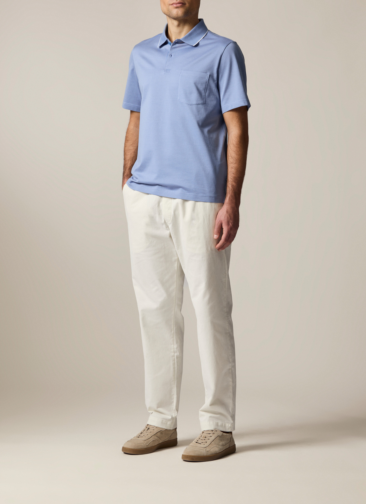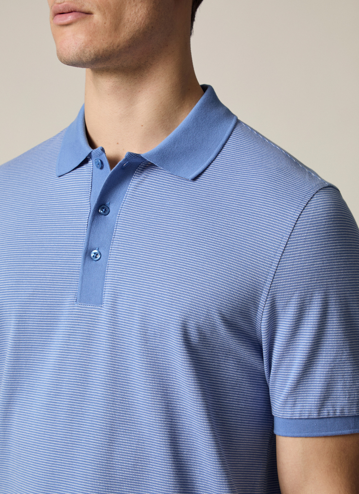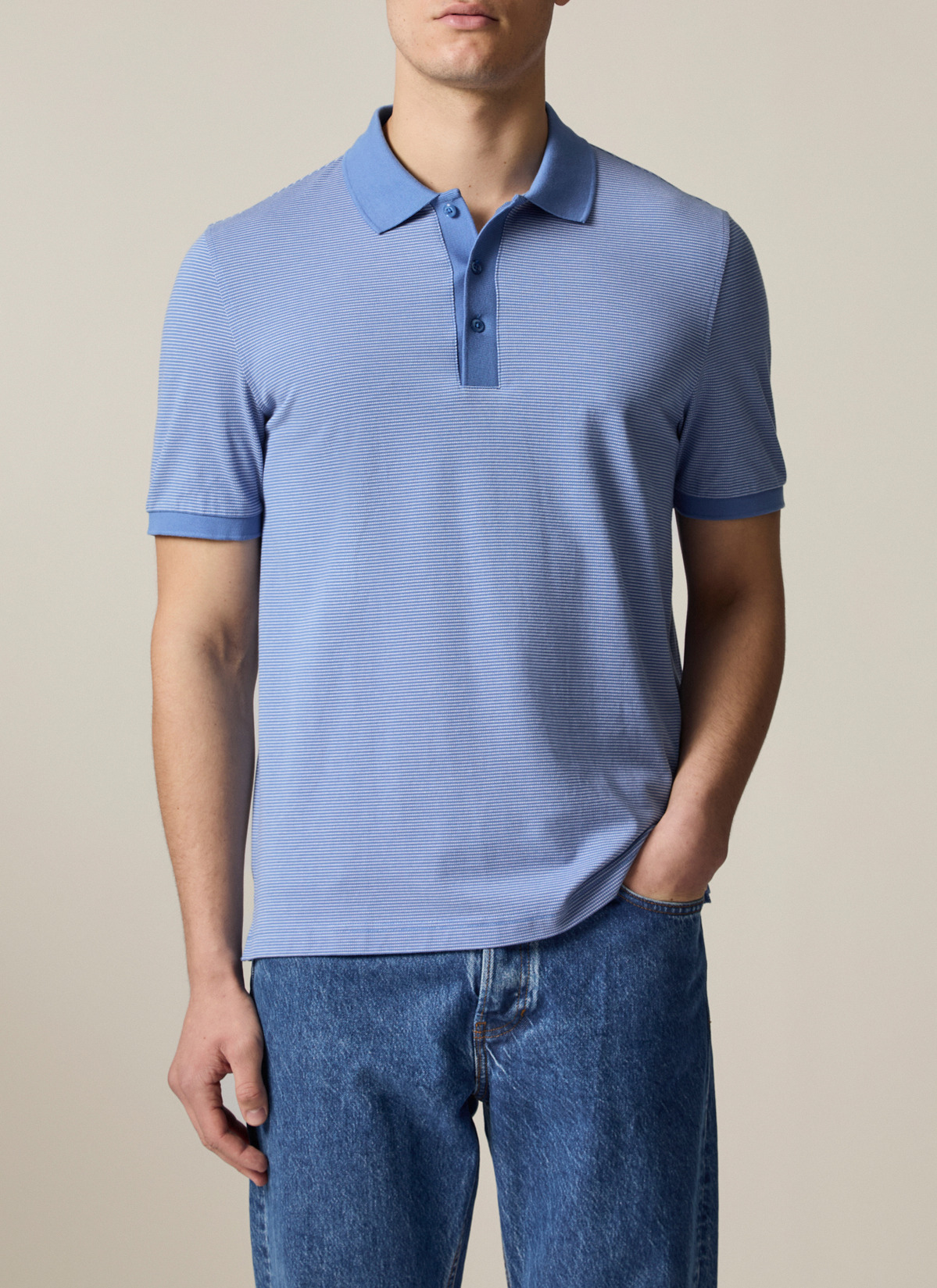 Das Polo zeigt sich im Regular Fit mit farblich abgehobenem Polokragen. Material: Gefertigt aus hochwertiger, merzerisierter Baumwolle ist das Polo edel glänzend und bietet hervorragende Atmungsaktivität. Optik: Das elegante Jacquard Muster und die dezent strukturierte Oberfläche verleihen dem Polo einen individuellen Look. Haptik: Die Baumwolle fühlt sich angenehm glatt und äußerst komfortabel auf der Haut an. Styling-Tipp: kombiniert mit einer farblich passenden Hose entsteht ein besonders moderner Look.
