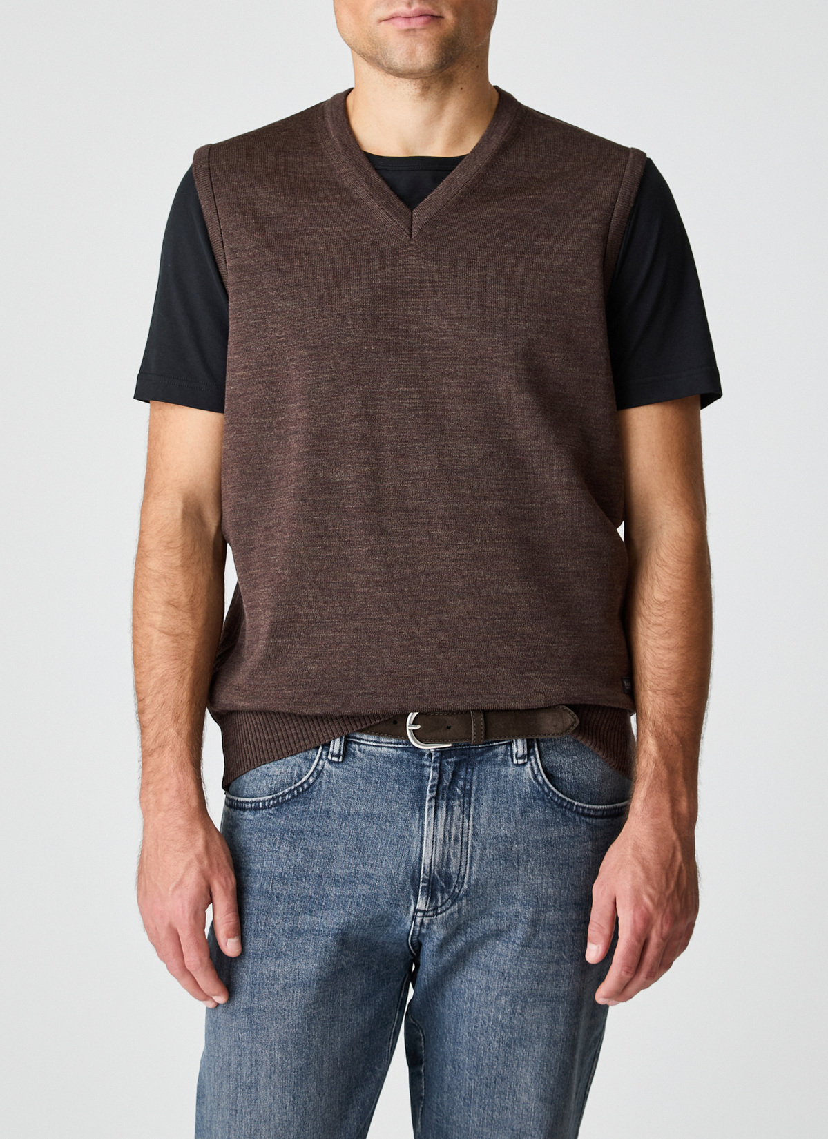 Cleanes Design trifft auf hochwertige Merinowolle! Pullunder mit V-Ausschnitt im Classic Fit – ein Klassiker für jeden Tag. Material: Merinowolle hat einen hohen Tragekomfort, ist feuchtigkeitsregulierend, geruchsneutral und besitzt eine wärmende sowie temperaturausgleichende Funktion. Haptik: cleanes, klassisches Maschenbild mit weichem Wollgriff. Hochwertige Verarbeitung mit handgekettelten Nähten und elastischen Bündchen. Tragegefühl: leicht und angenehm wärmend.