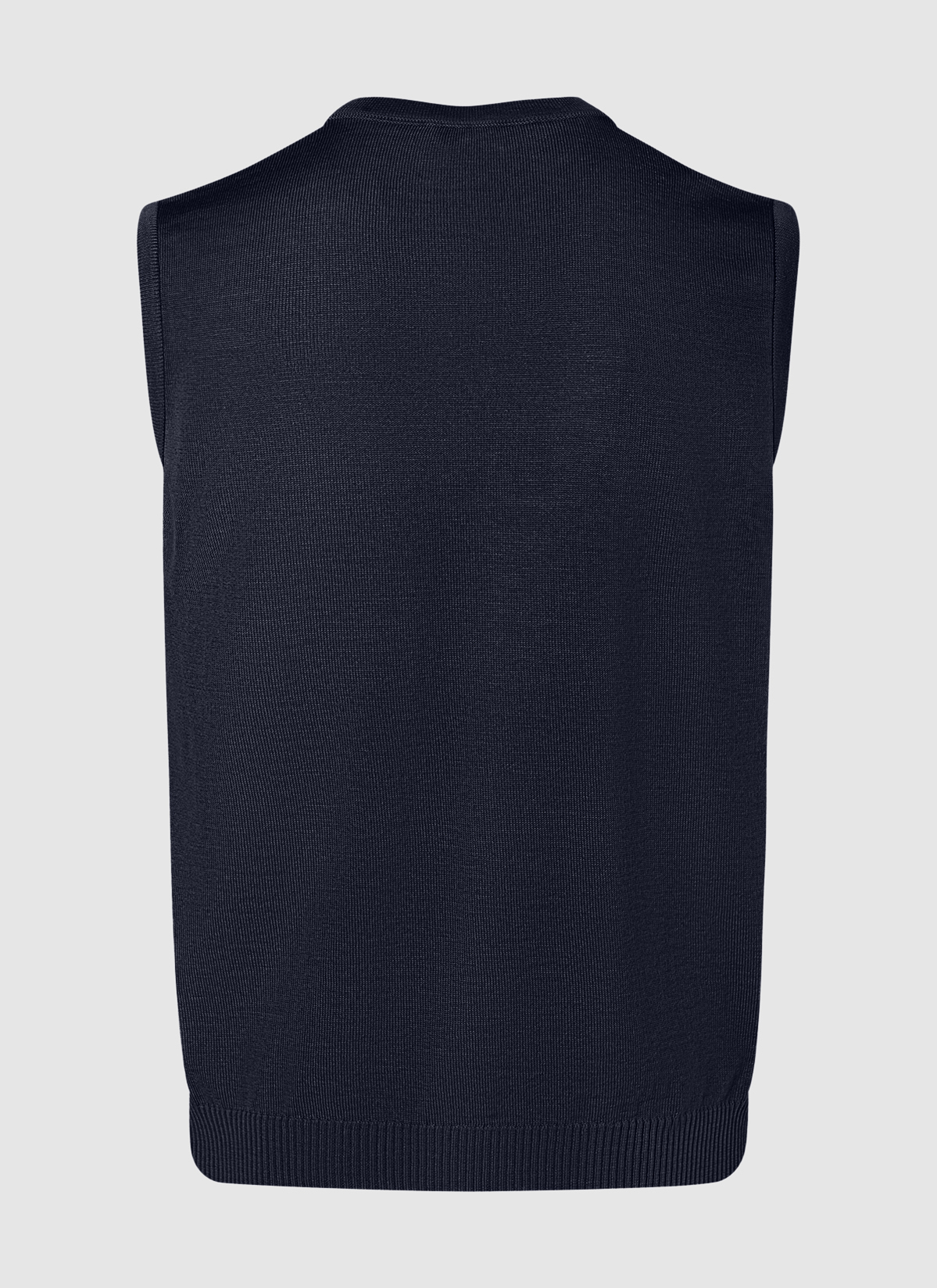 Cleanes Design trifft auf hochwertige Merinowolle! Pullunder mit V-Ausschnitt im Classic Fit – ein Klassiker für jeden Tag. Material: Merinowolle hat einen hohen Tragekomfort, ist feuchtigkeitsregulierend, geruchsneutral und besitzt eine wärmende sowie temperaturausgleichende Funktion. Haptik: cleanes, klassisches Maschenbild mit weichem Wollgriff. Hochwertige Verarbeitung mit handgekettelten Nähten und elastischen Bündchen. Tragegefühl: leicht und angenehm wärmend.