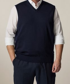 MAERZ Herren Kleidung Pullunder|100% Merinowolle | Navy