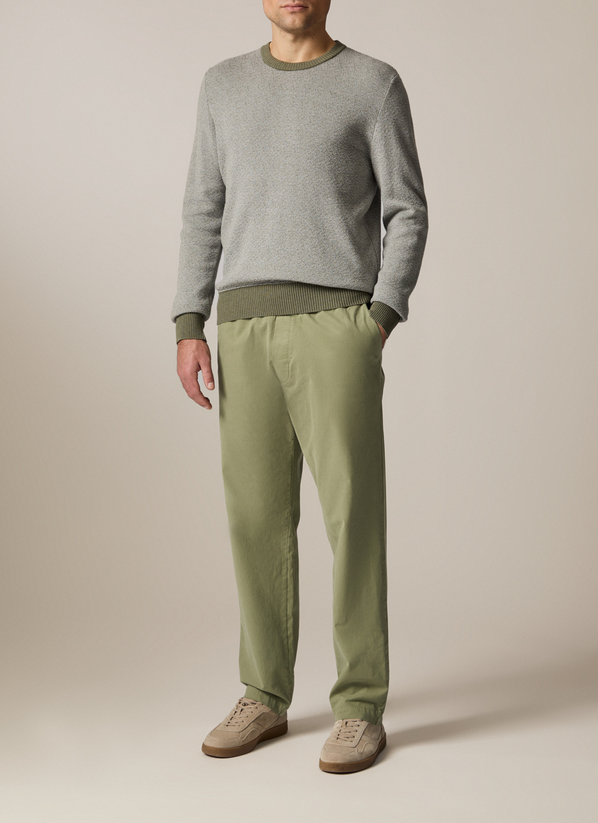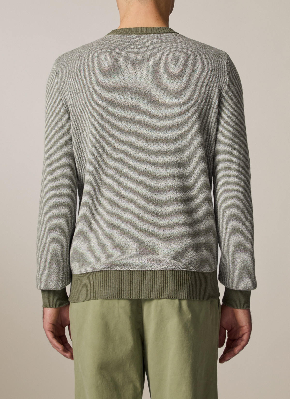 Ein Basic Pullover mit modernem Twist! Der Pullover zeigt sich im Regular Fit mit Rundhalsausschnitt. Durch die verschieden farbigen Garne entsteht ein markantes Muster, welches dem Pullover einen besonderen Charakter verleiht. Die uni farbenen Rippenbündchen an Saum und Ärmeln bilden einen harmonischen Kontrast. Material: gefertigt aus Baumwolle bietet der Pullover einen hervorragenden Tragekomfort und ist besonders pflegeleicht . Haptik: kernig und weich im Griff.