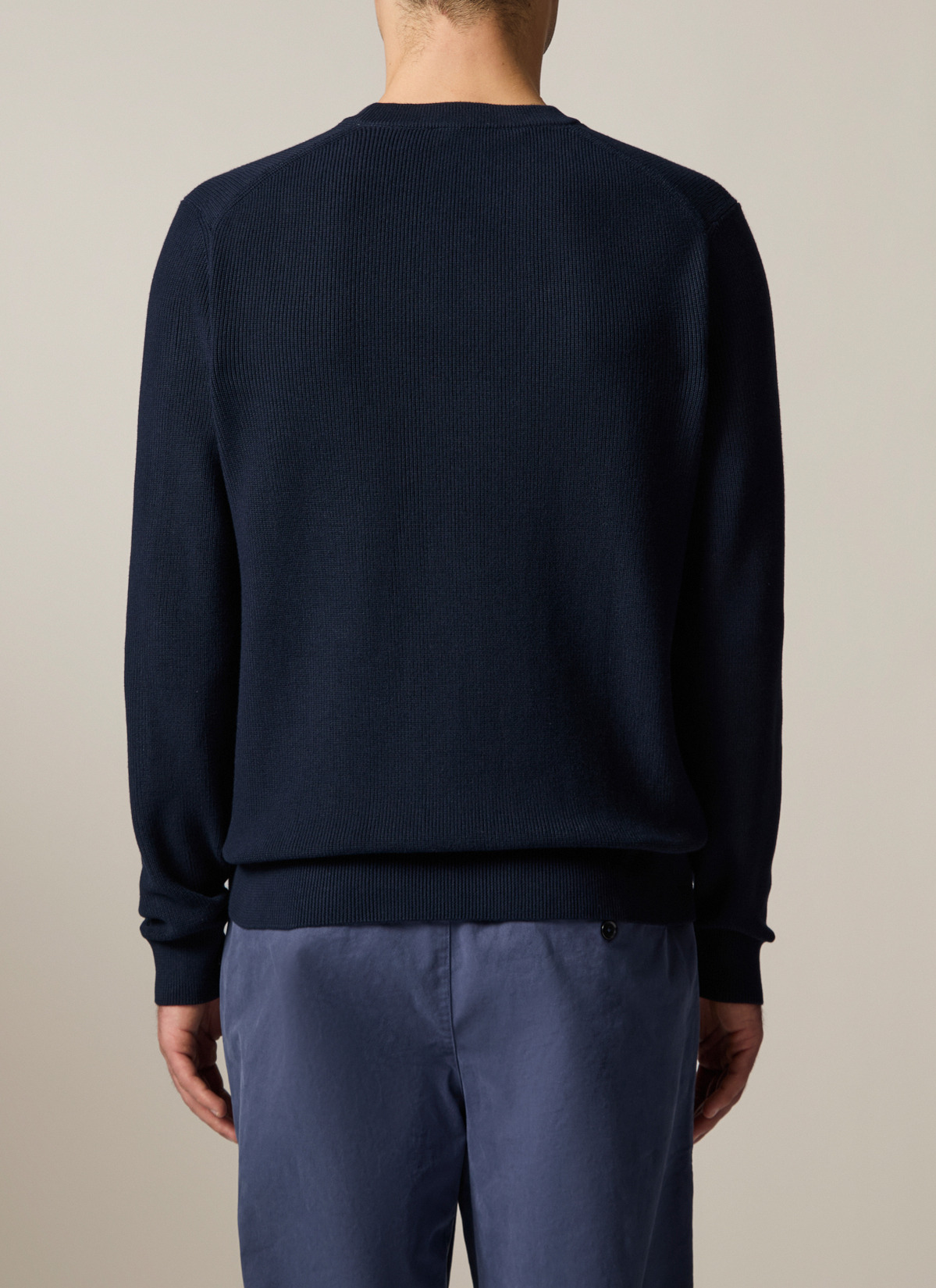 Ein Basic Must-Have in jedem Kleiderschrank! Der Rundhalspullover zeigt sich mit markanter Perlfang-Optik. Durch französische Schulter erhält der Pullover eine besonders elegante, weiche und fließende Passform. Material: gefertigt aus Baumwolle bietet der Pullover einen hervorragenden Tragekomfort und ist besonders pflegeleicht . Haptik: kernig und weich im Griff. Styling-Tipp: kombiniert mit einem Hemd entsteht ein feiner Kontrast zum entspannten Stil des Pullovers.