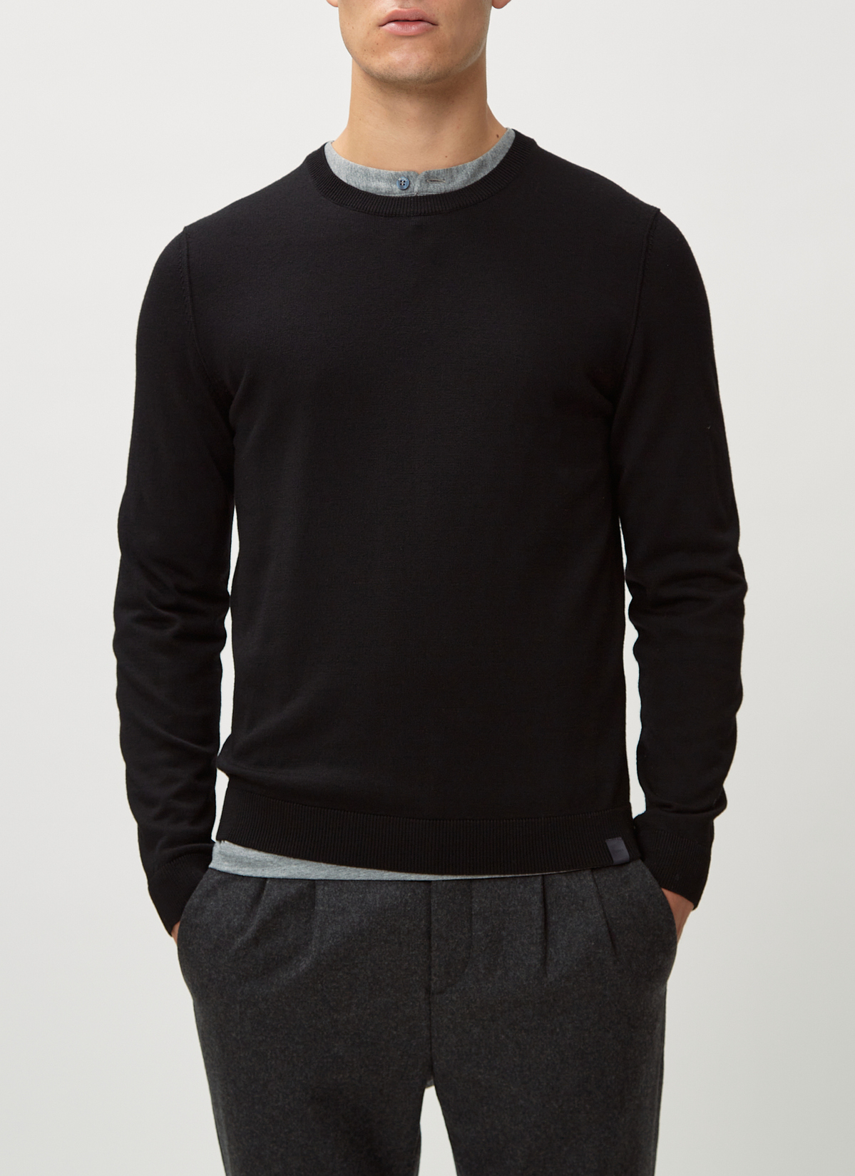 Sportiv und vielseitig: moderner Pullover mit Rundhalsausschnitt im Modern Fit. Besonders: die nachaußengedrehte Naht und die aufwendigen Strickdetails an Schulter und Kragen. Material: fein und weich, aber enorm strapazierfähig, mit einem festen und gleichzeitig elastischen Griff. Haptik: cleanes klassisches Maschenbild mit weichem Wollgriff. Hochwertige Verarbeitung mit handgekettelten Nähten und elastischen Bündchen.