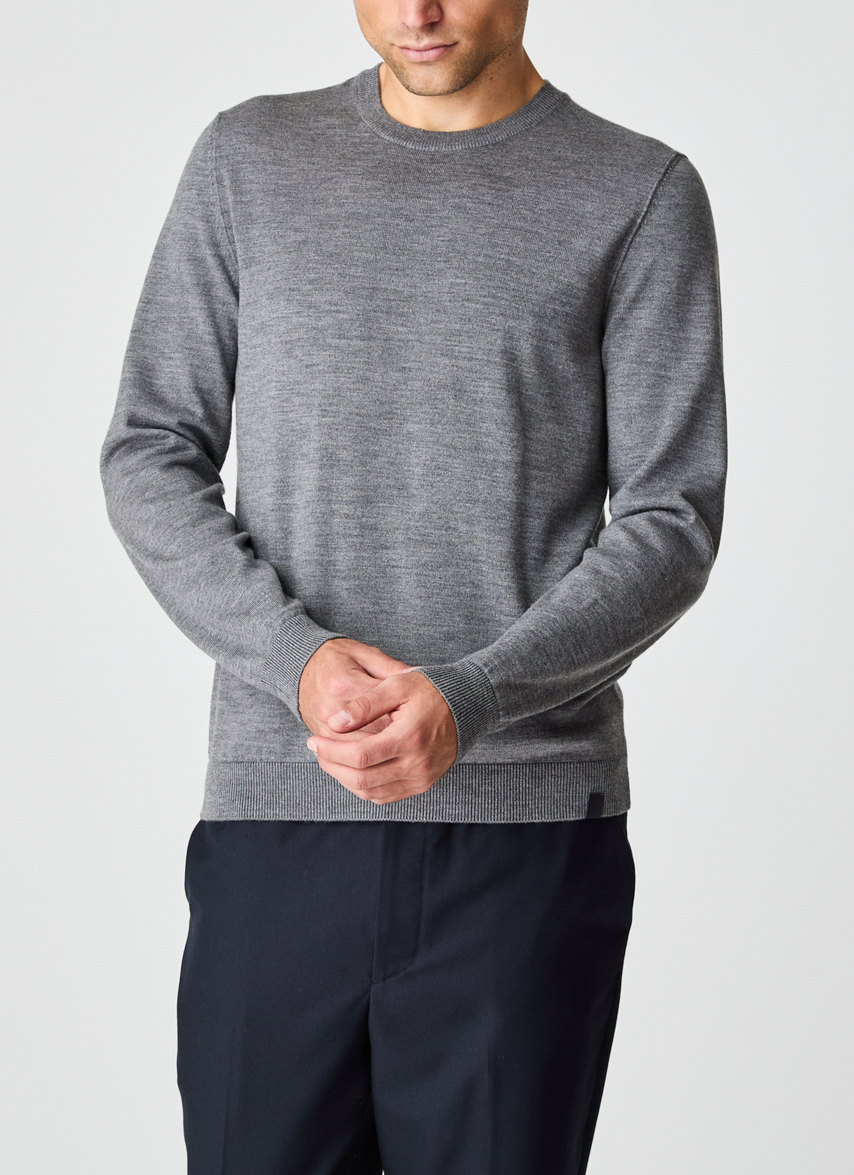 Sportiv und vielseitig: moderner Pullover mit Rundhalsausschnitt im Modern Fit. Besonders: die nachaußengedrehte Naht und die aufwendigen Strickdetails an Schulter und Kragen. Material: fein und weich, aber enorm strapazierfähig, mit einem festen und gleichzeitig elastischen Griff. Haptik: cleanes klassisches Maschenbild mit weichem Wollgriff. Hochwertige Verarbeitung mit handgekettelten Nähten und elastischen Bündchen.