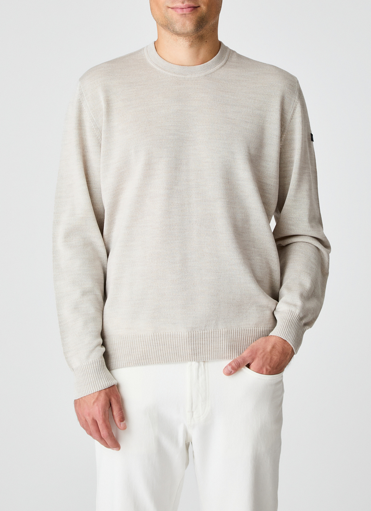 MAERZ Herren Kleidung Rundhalspullover|100% Merinowolle | Mascarpone Cream