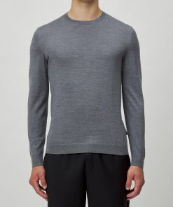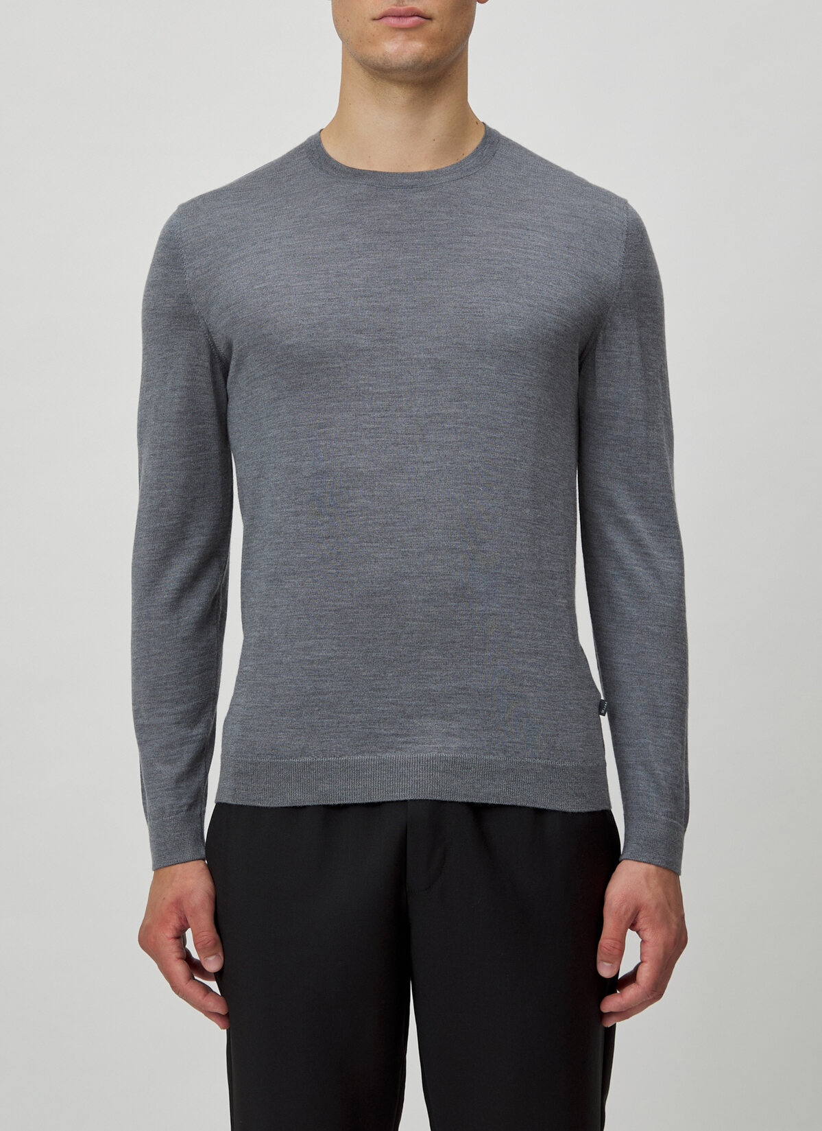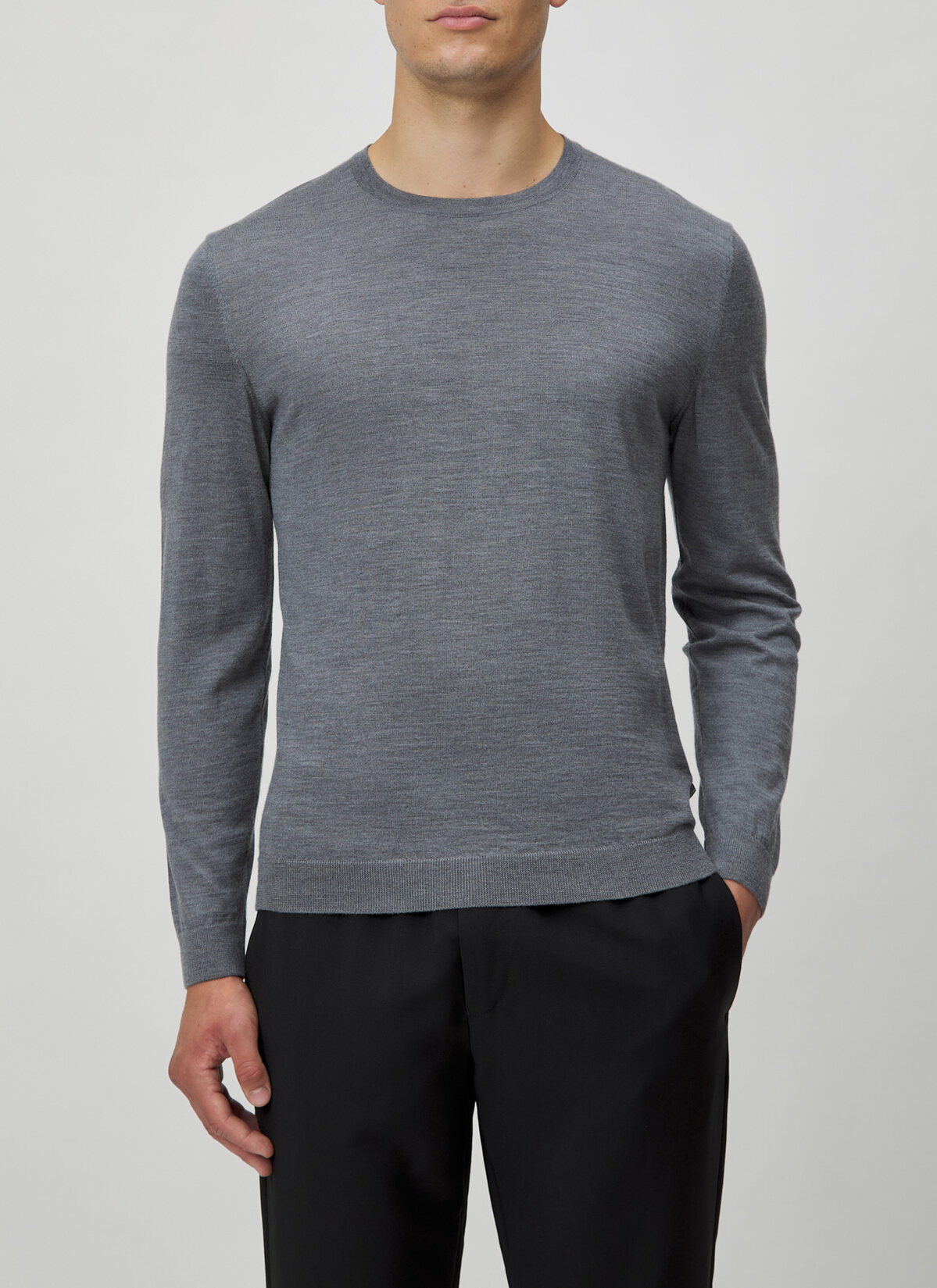 MAERZ Herren Kleidung Rundhalspullover|merino-seide-cashmere | Grey Rock