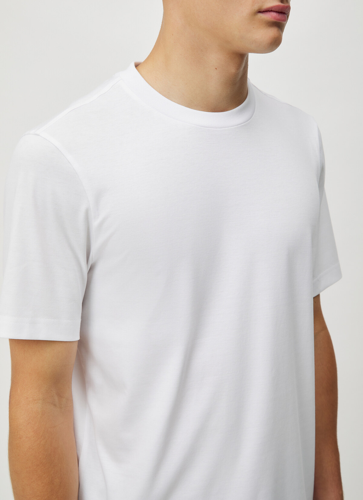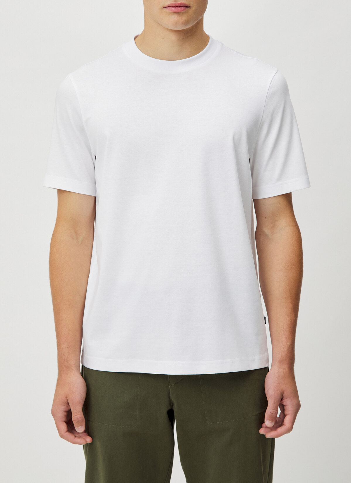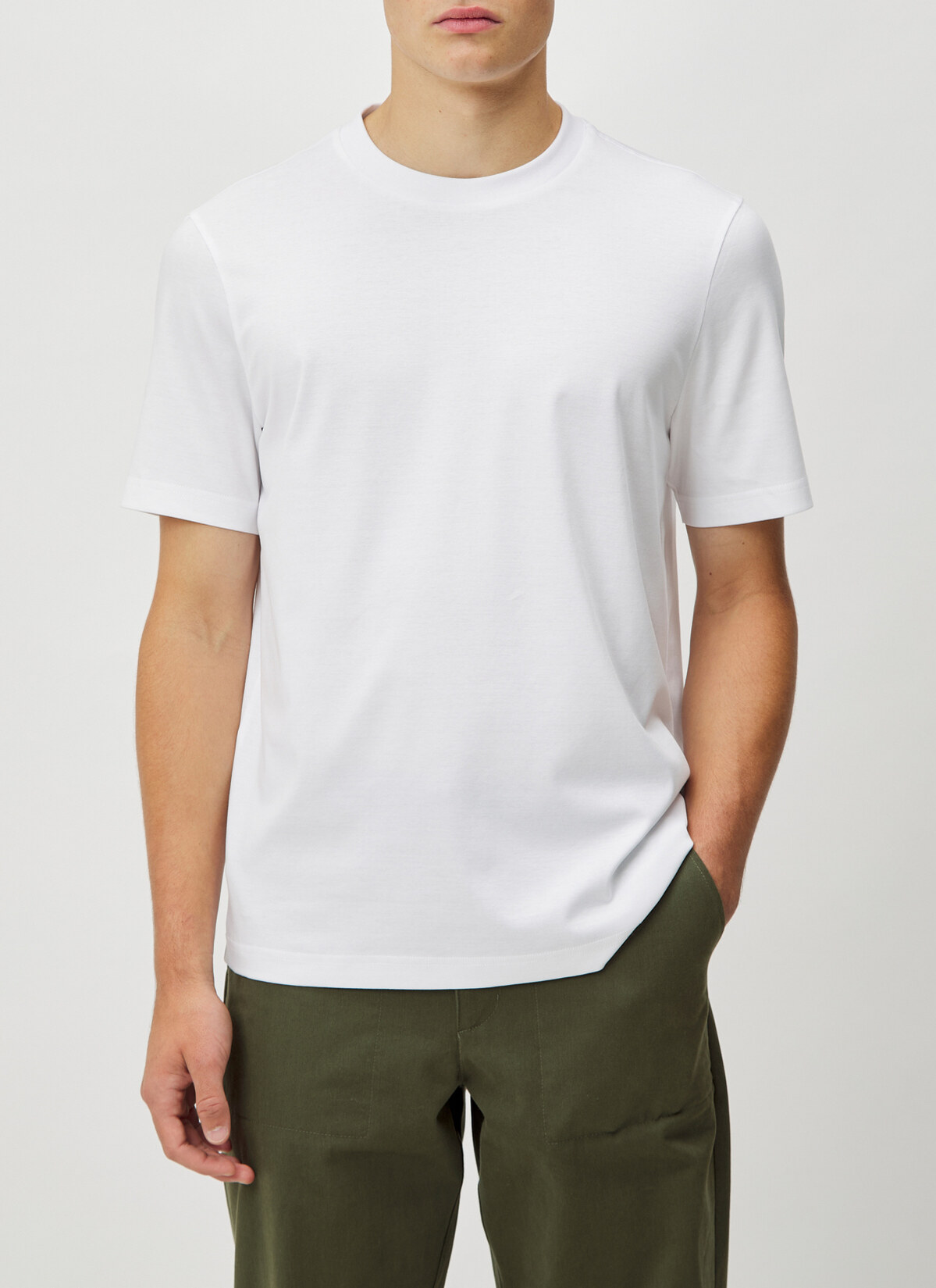 Kurzarm Rundhalsshirt aus 100% Baumwolle. Das Basic überzeugt durch einen cleanen Schnitt und ist ein Must-have in jedem Kleiderschrank. Material: Die Baumwolle ist kühl und weich im Griff. Verarbeitung: die verarbeitete Baumwolle ist merzerisiert. Dadurch entsteht die seidige, leicht glänzende Oberfläche. Das Shirt erfreut mit hoher Formbeständigkeit.