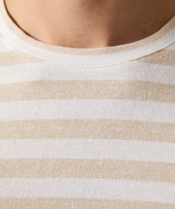 Das T-Shirt im Modern Fit präsentiert sich mit dezenten, horizontalen Streifen, die dem klassischen Design eine moderne Note verleihen. Material: gefertigt aus einer weichen Mischung aus Baumwolle und Leinen, bietet es einen hohen Tragekomfort, ist atmungsaktiv, leicht und feuchtigkeitsregulierend. Haptik: leicht und kühl. Styling-Tipp: Perfekt kombiniert mit einer lässigen Jeans oder Shorts für einen entspannten, aber eleganten Look.