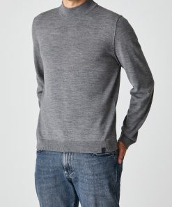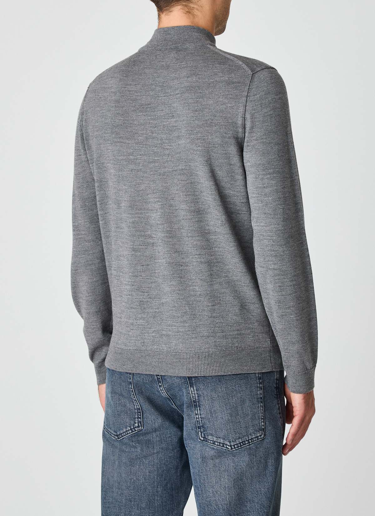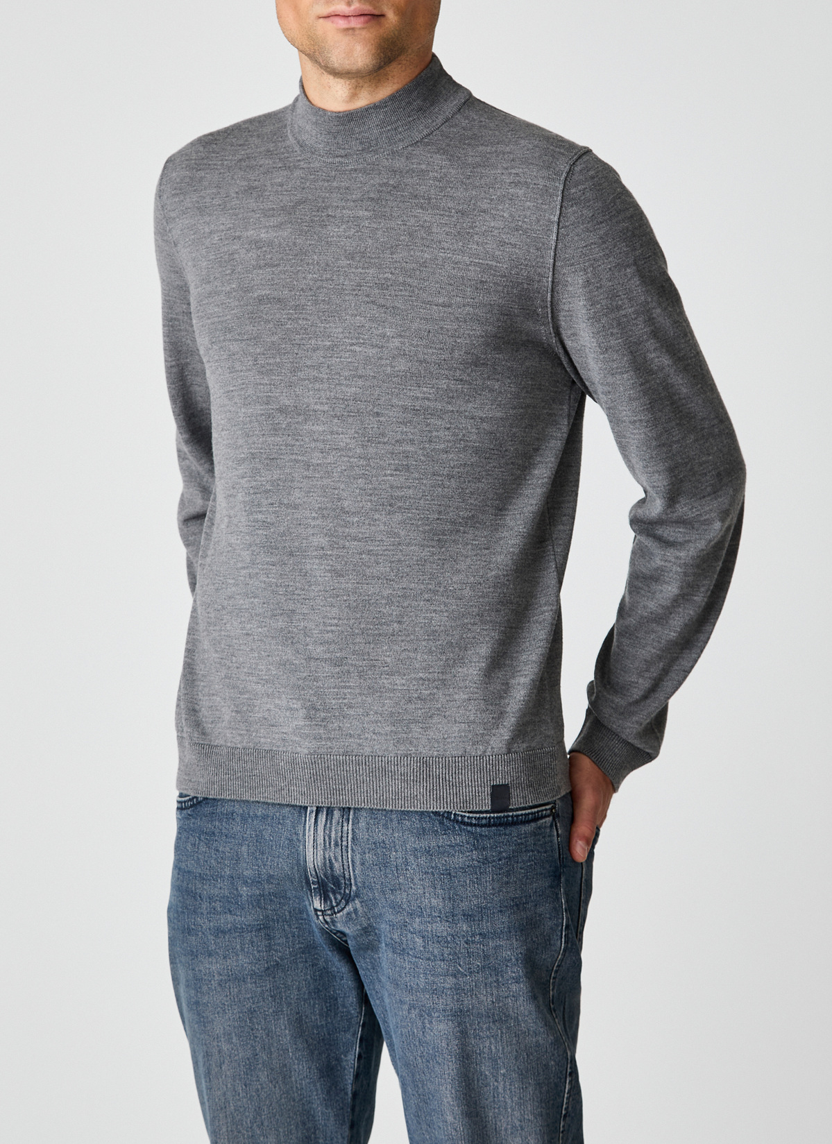Sportiv und vielseitig: moderner Pullover mit Stehkragen im Modern Fit. Besonders: die nachaußengedrehte Naht und die aufwendigen Strickdetails an Schulter und Kragen. Material: fein und weich, aber enorm strapazierfähig, mit einem festen und gleichzeitig elastischen Griff. Haptik: cleanes klassisches Maschenbild mit weichem Wollgriff. Hochwertige Verarbeitung mit handgekettelten Nähten und elastischen Bündchen.