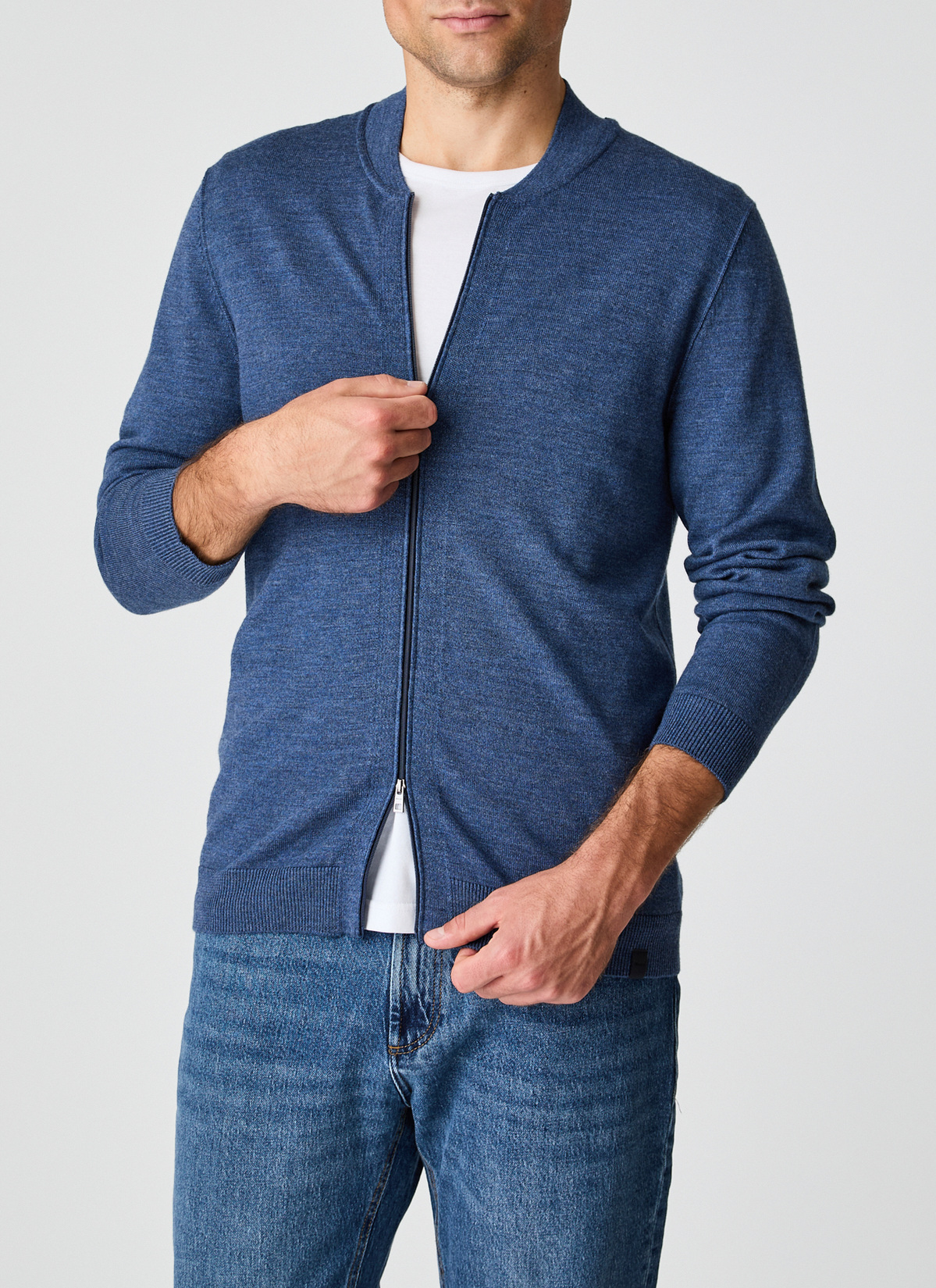 Sportiv und vielseitig: moderne Strickjacke im Modern Fit mit Reißverschluss. Besonders: die nachaußengedrehte Naht und die aufwendigen Strickdetails an Schulter und Kragen. Material: fein und weich, aber enorm strapazierfähig, mit einem festen und gleichzeitig elastischen Griff. Haptik: cleanes klassisches Maschenbild mit weichem Wollgriff. Hochwertige Verarbeitung mit handgekettelten Nähten und elastischen Bündchen.