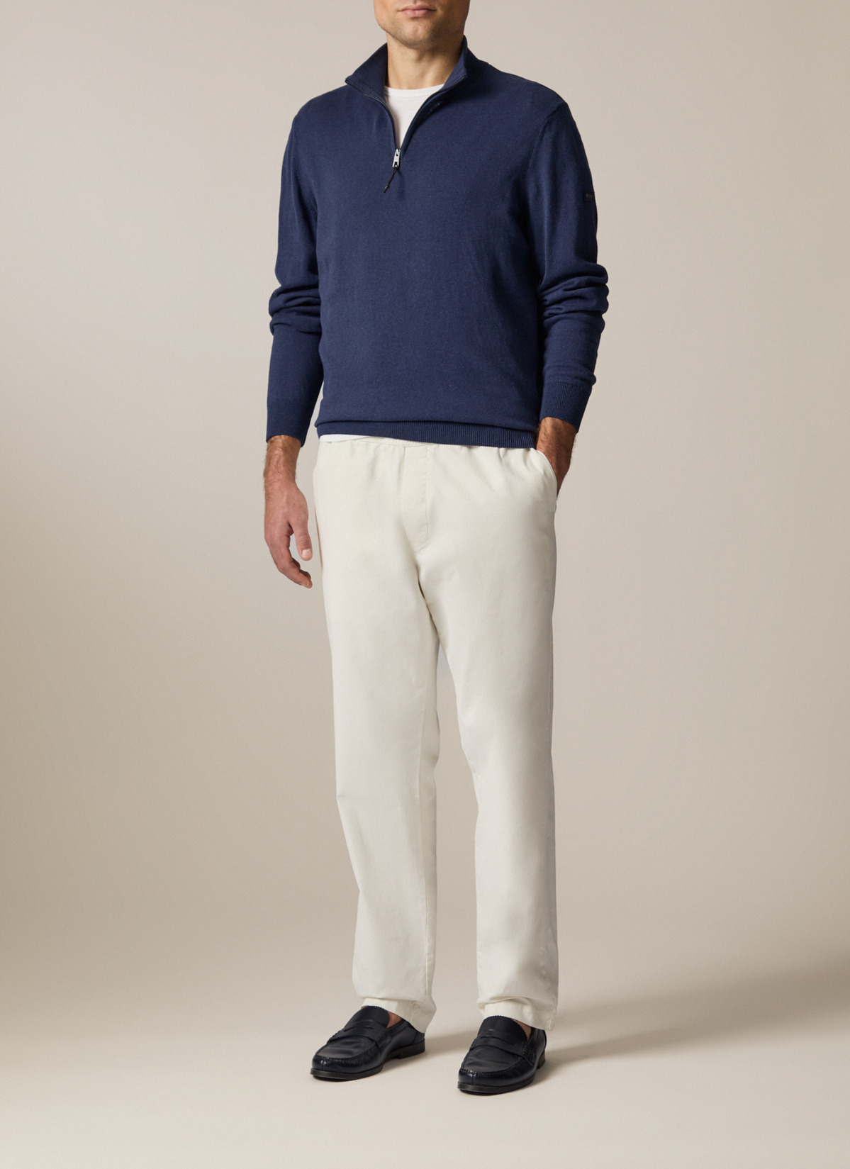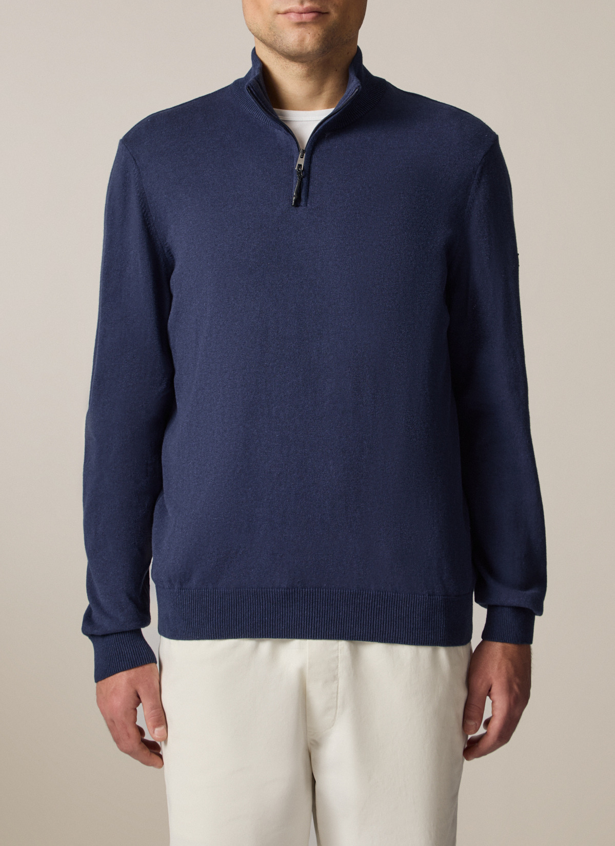 Der Pullover im Regular Fit zeigt sich mit Troyer Kragen und Rippendetails an Saum und Kragen. Der Pullover überzeugt durch seinen klassischen, sportlichen Look und den praktischen Reißverschluss am Kragen, der je nach Wunsch geöffnet oder geschlossen getragen werden kann. Material: gefertigt aus Baumwolle ist der Pullover besonders hautfreundlich und atmungsaktiv. Haptik: weich und leicht im Griff. Styling-Tipp: für einen Eleganten Look mit einer farblich passenden Stoffhose oder alltagstauglich zu Jeans.