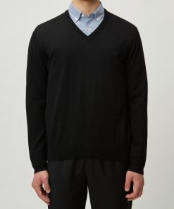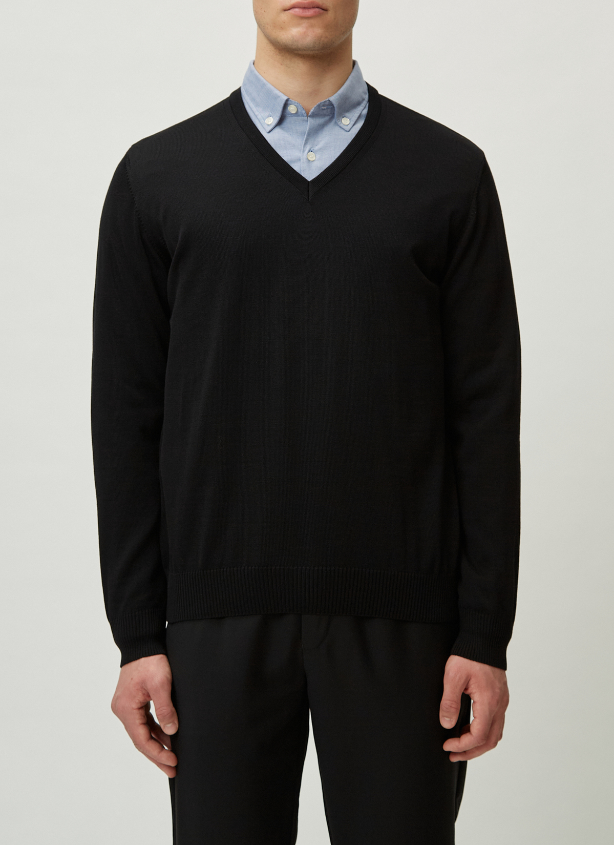 MAERZ Herren Kleidung V-pullover|100% Merinowolle | Black