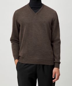 MAERZ Herren Kleidung V-pullover|100% Merinowolle | Field Brown