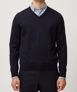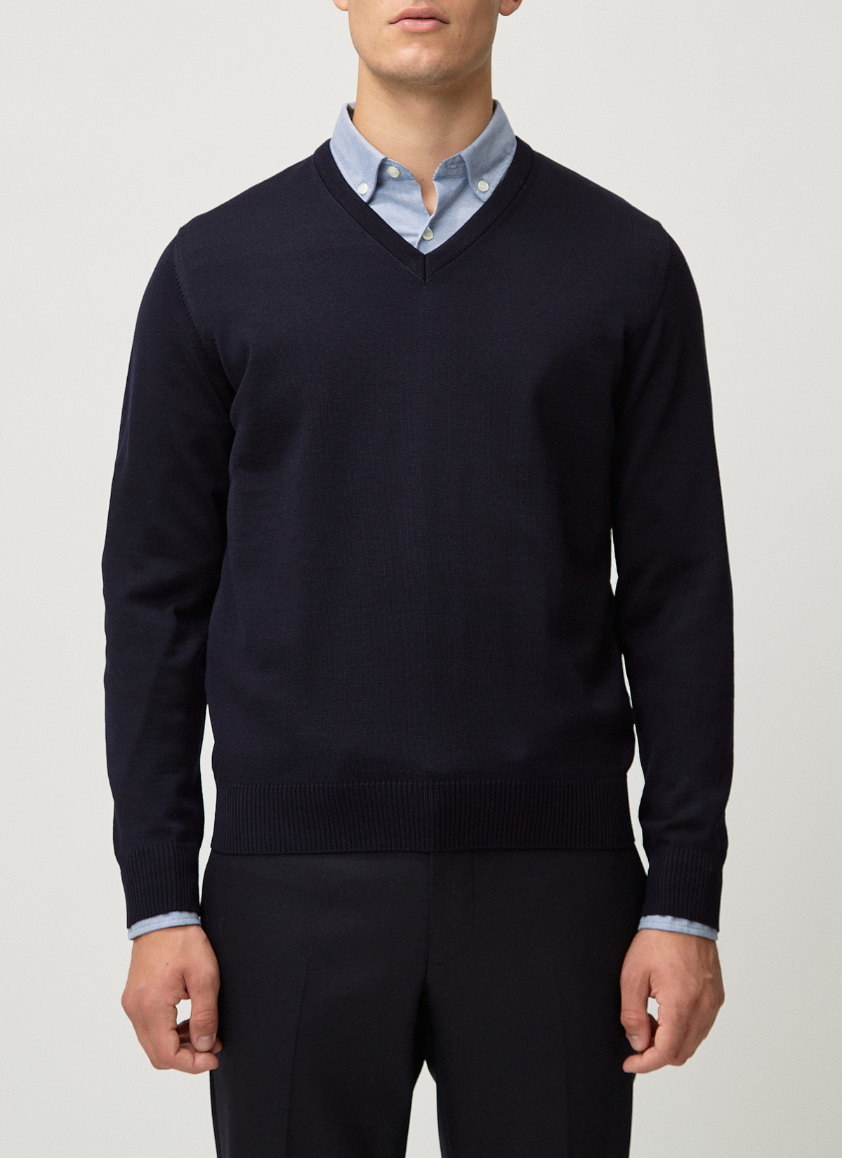 MAERZ Herren Kleidung V-pullover|100% Merinowolle | Navy