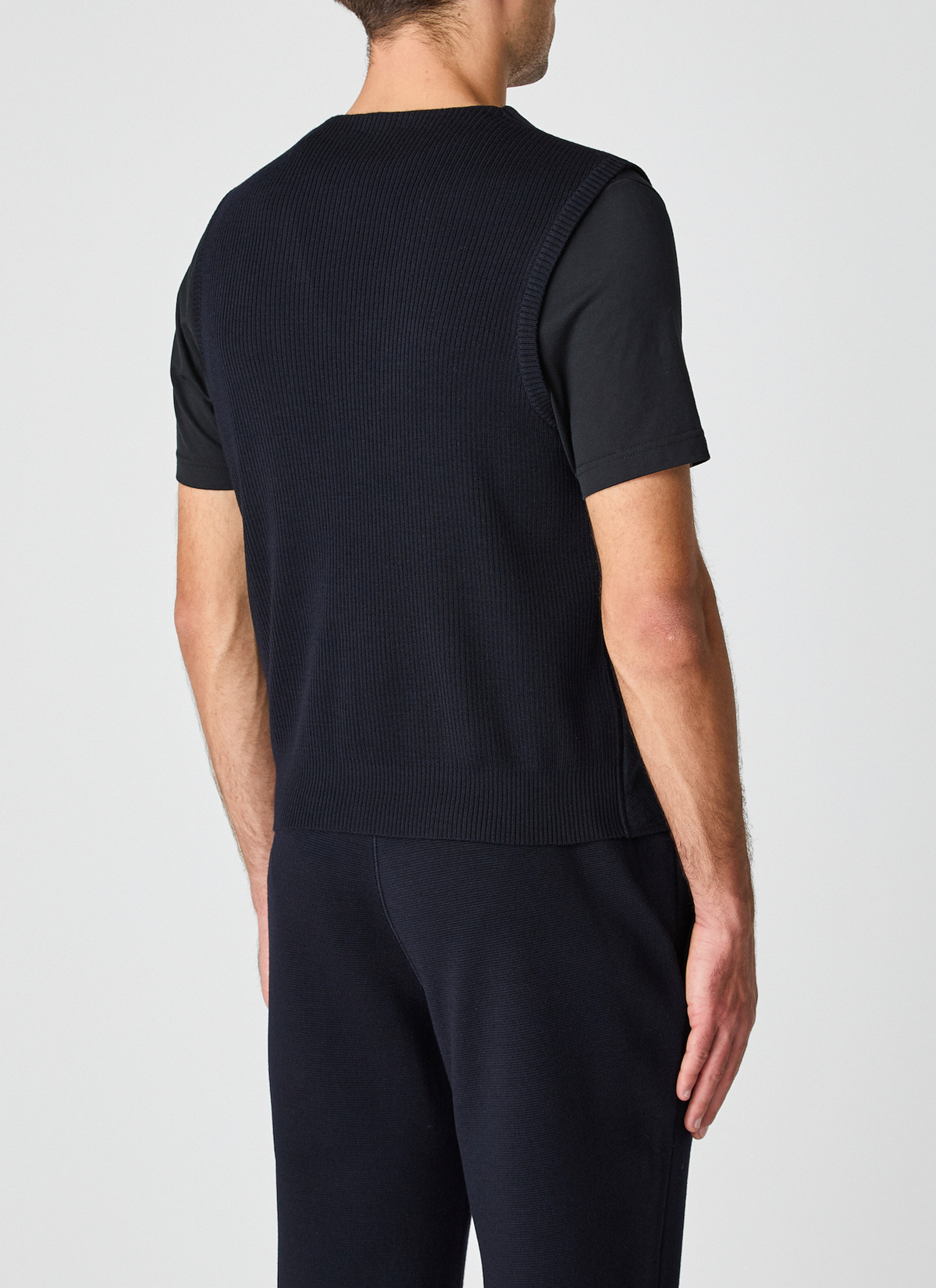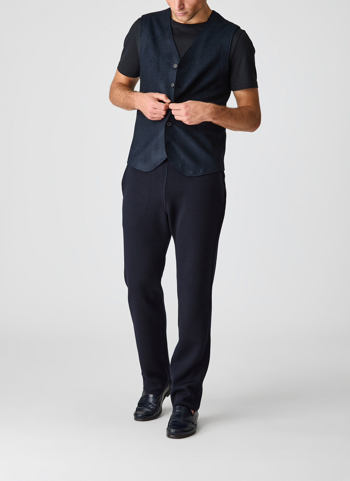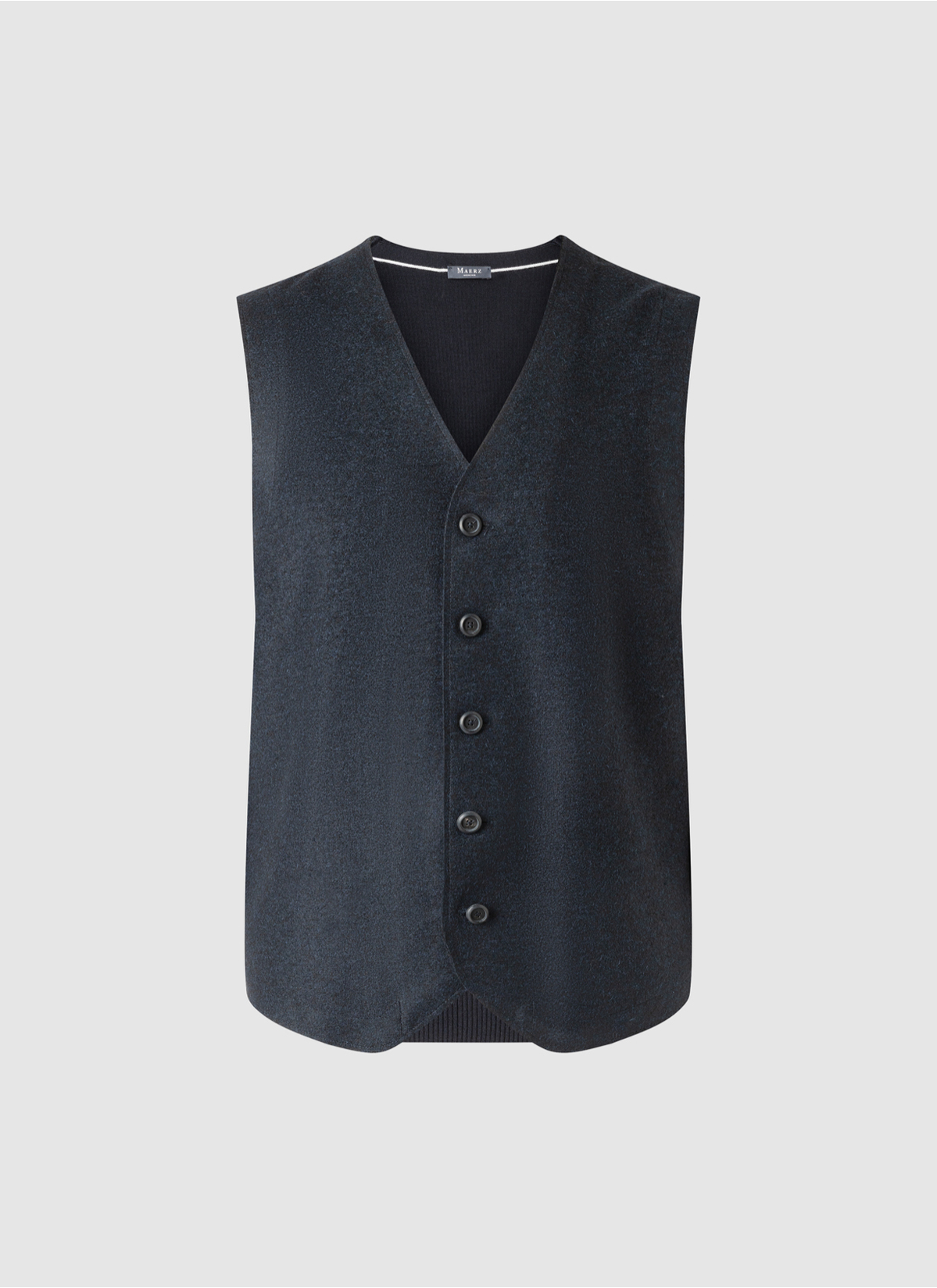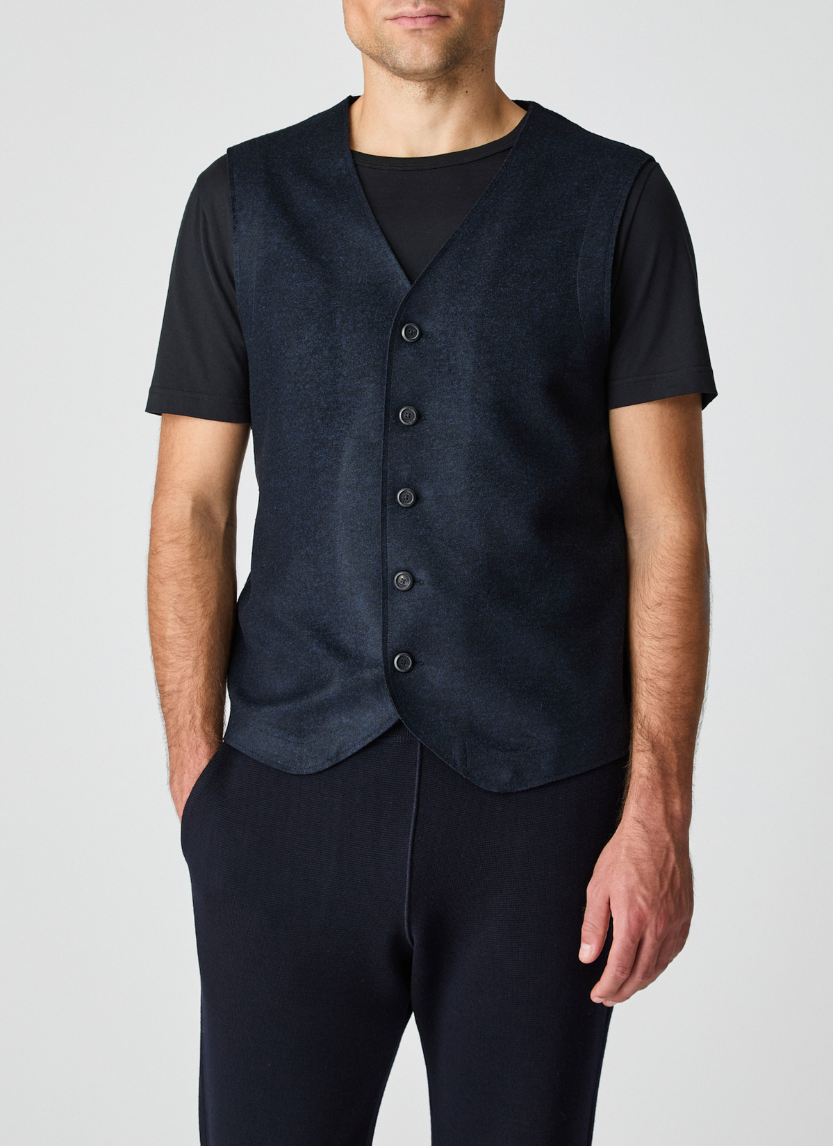 Diese Herrenweste überzeugt mit einem ausgewogenen Zusammenspiel aus klassischer Form und modernen Materialien. Der V-Ausschnitt in Kombination mit der durchgehenden Knopfleiste sorgt für eine klare, gepflegte Optik. Die Passform im Modern Fit trägt sich angenehm ohne einzuengen. Die Vorderseite ist aus weichem Wolljersey gearbeitet, die Rückseite aus feinem Strick. Gefertigt aus extrafeiner Merinowolle fühlt sich die Weste weich auf der Haut an, reguliert die Körpertemperatur und bleibt dauerhaft formstabil. Die hochwertige Verarbeitung macht die Weste zu einem vielseitigen Begleiter für geschmackvolle Lagenlooks. Besonders geeignet für Kombinationen mit Hemd oder leichtem Pullover.