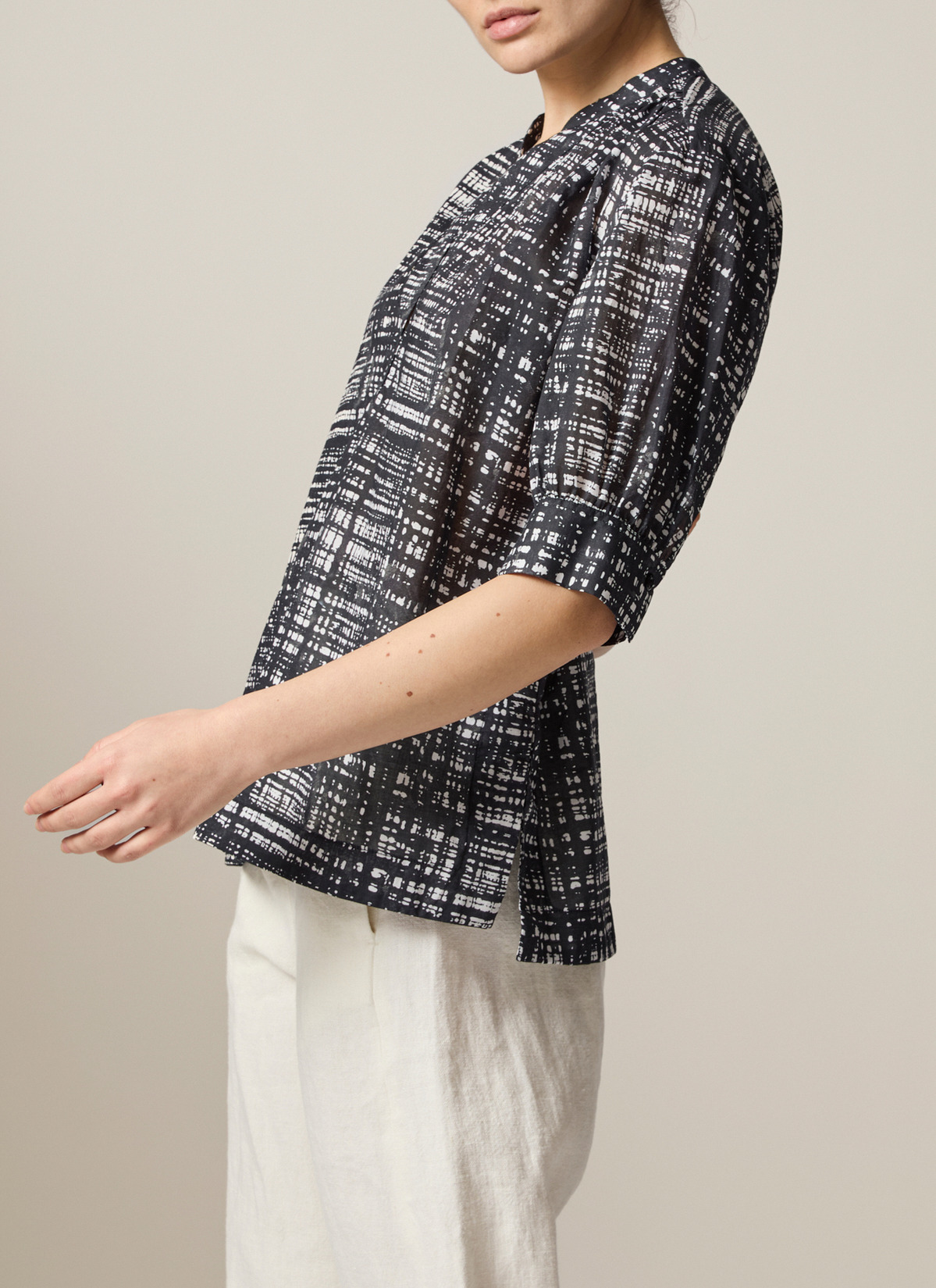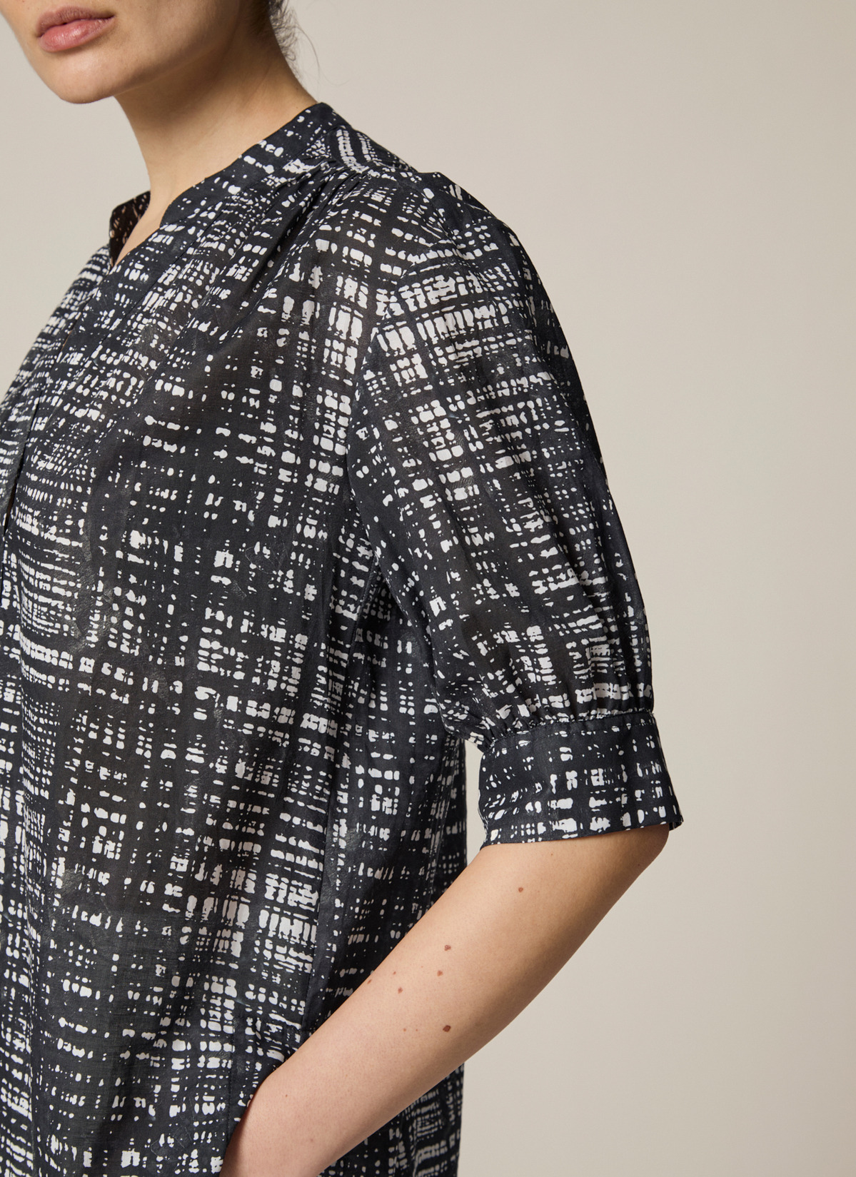 Die Bluse im Modern Fit zeigt sich mit Statement Muster und V-Ausschnitt. Die voluminös geschnittenen Ärmel mit Manschette verleihen der Bluse einen femininen Look. Material: gefertigt aus Baumwolle ist die Bluse wunderbar atmungsaktiv und pflegeleicht. Haptik: glatt und kühl im Griff. Das Modell ist die perfekte moderne Variante zur klassischen Office-Bluse!