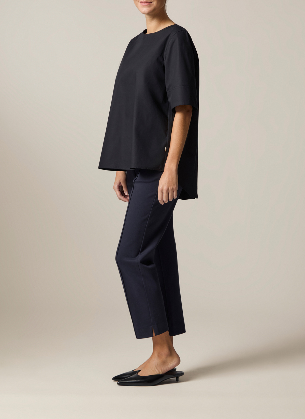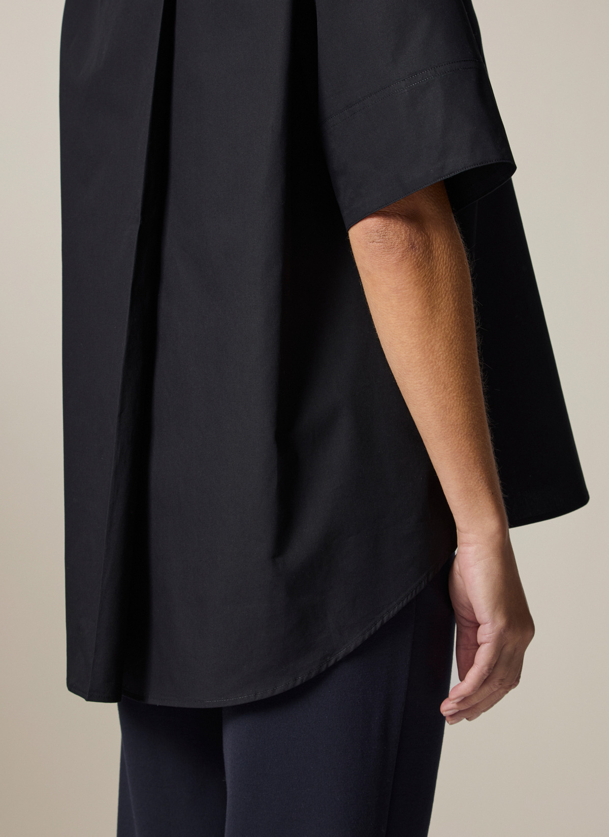Die Kurzarmbluse im Modern Fit zeigt sich schlicht auf der Vorder- und mit moderner Zierfalte auf der Rückseite. Diese verleiht de Bluse eine besonders feminine Form. Material: Die Popeline in Biobaumwollqualität überzeugt durch eine äußerst strapazierfähige Leinwandbindung. Haptik: glatt und kühl im Griff. Das Modell ist die perfekte moderne Variante zur klassischen Office-Bluse!