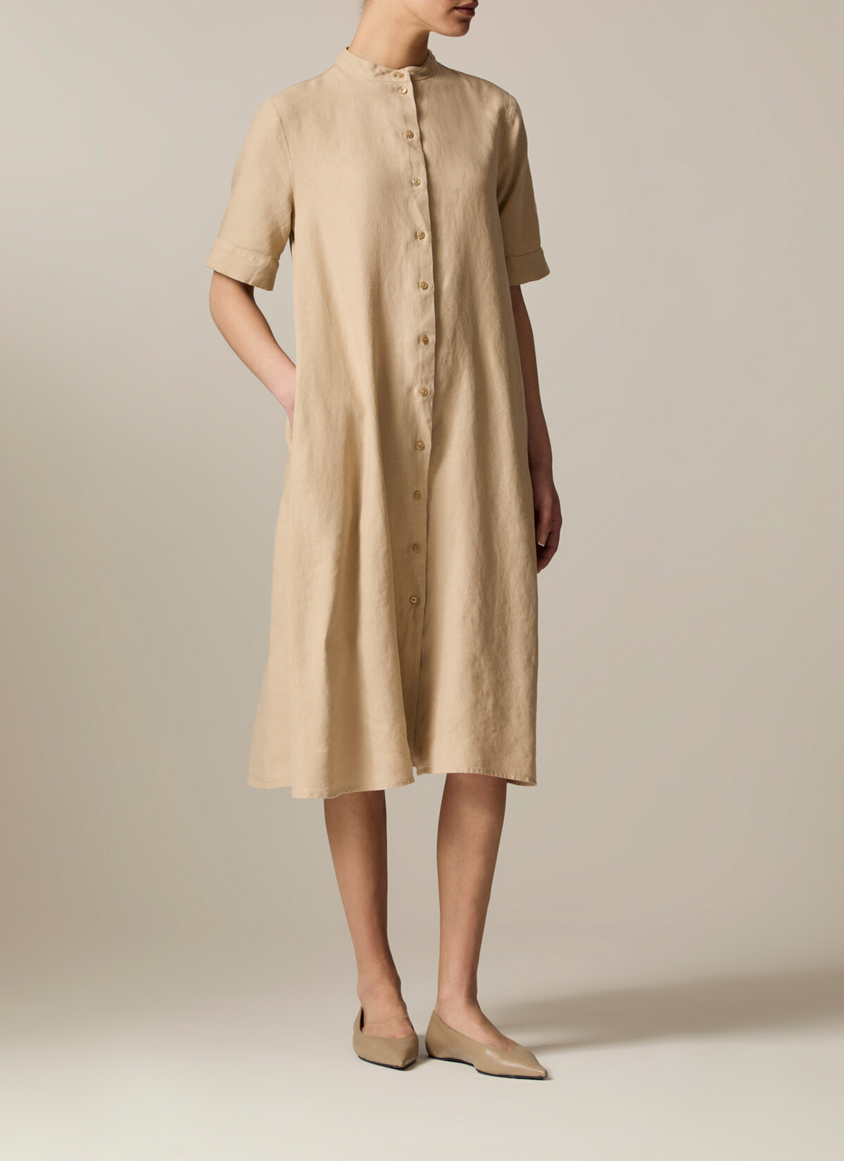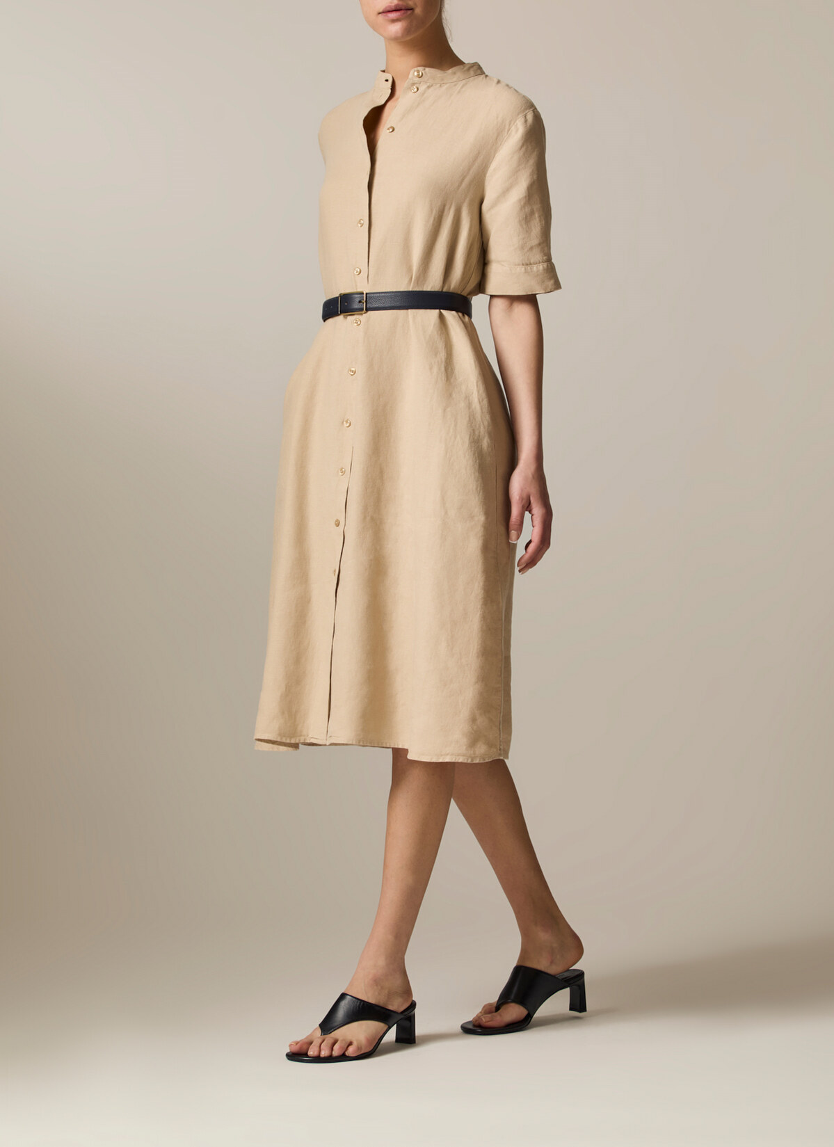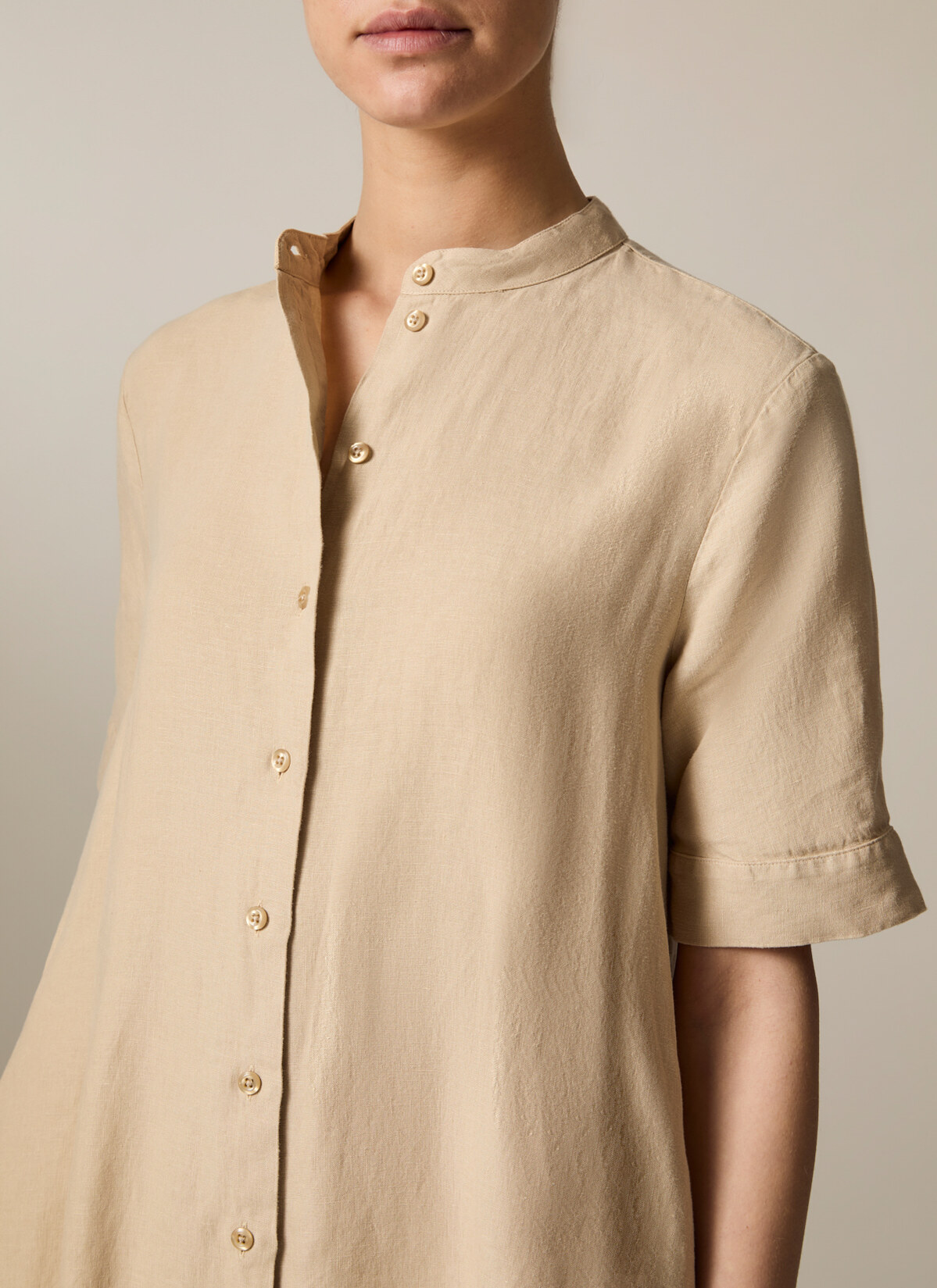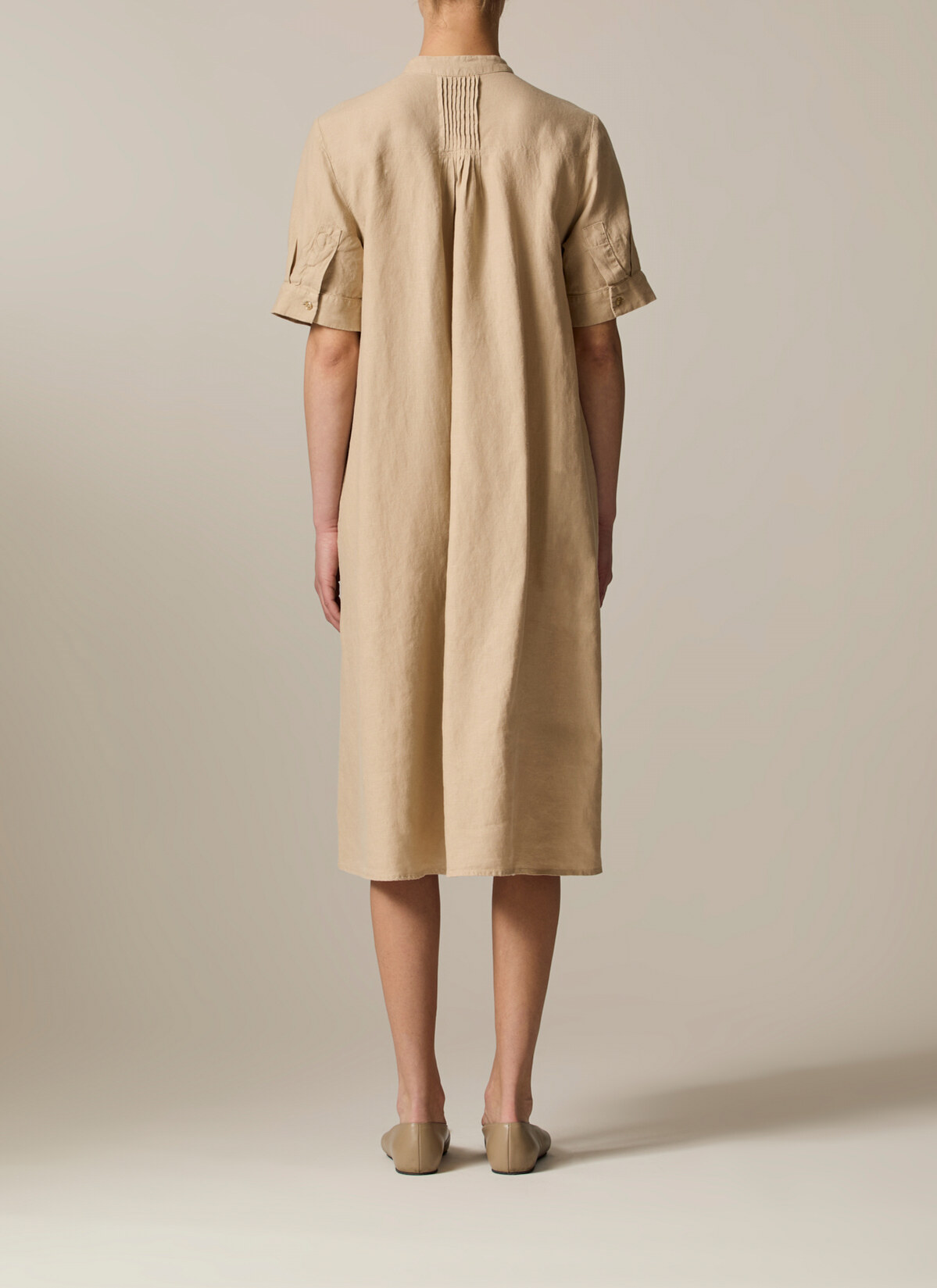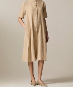 Das Kleid im entspannten Modern Fit zeigt sich mit Stehkragen sowie femininen Zierfalten auf der Rückseite. Material: gefertigt aus Leinen ist das Kleid wunderbar kühlend und atmungsaktiv. Haptik: kernig und kühl im Griff. Styling-Tipp: für einen entspannten Look mit den Lieblings Sneakers kombinieren.