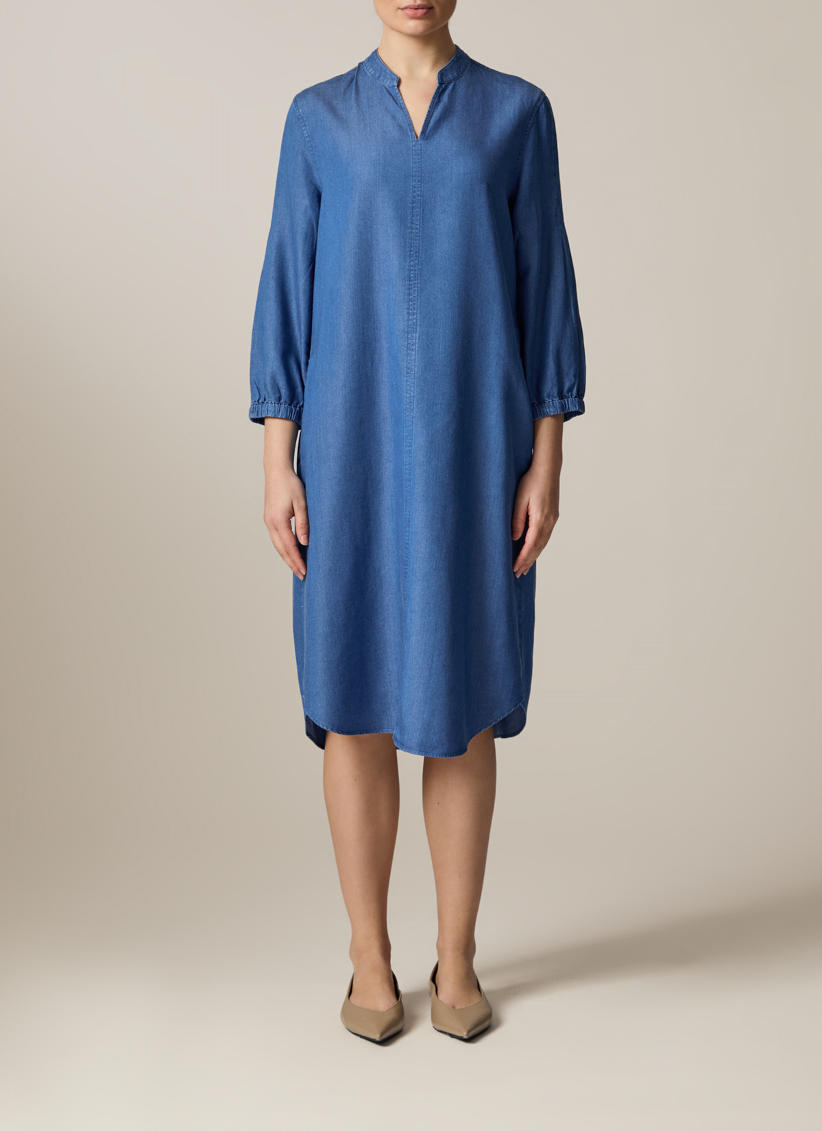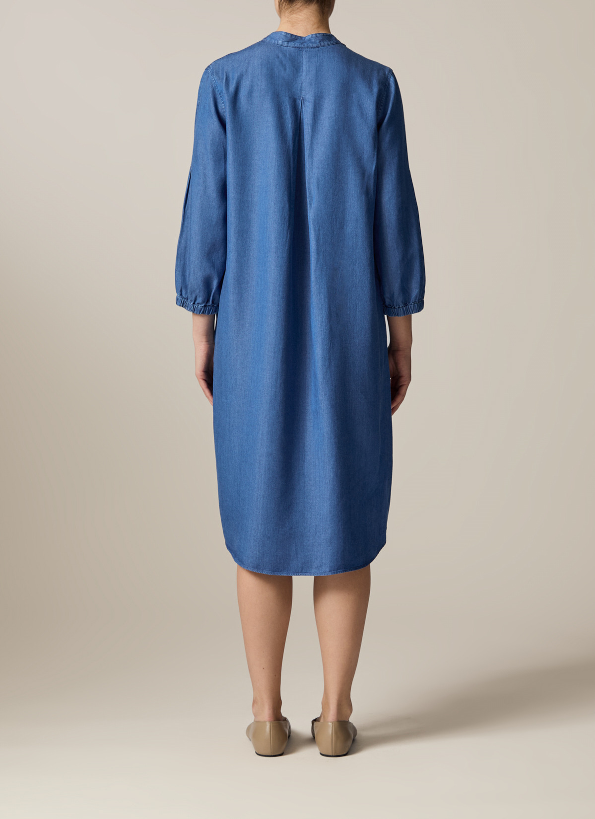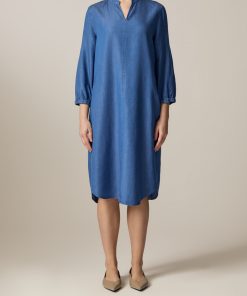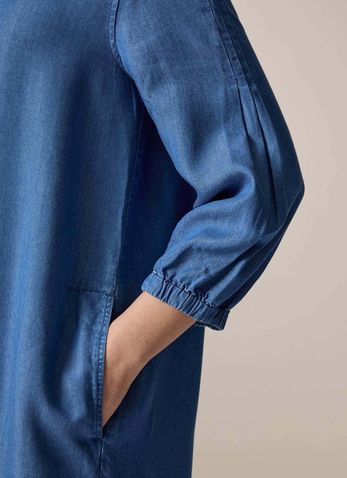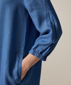 Das Kleid im Modern Fit zeigt sich in Denim Optik mit Naht Detail auf der Vorderseite sowie seitlichen Eingriffstaschen. Die Kellerfalte auf der Rückseite verleiht dem Kleid einen femininen Look und eleganten Fall. Material: zu 100% aus Lyocell gefertigt ist das Kleid besonders hautfreundlich und temperatur ausgleichend. Haptik: weich und leicht im Griff.