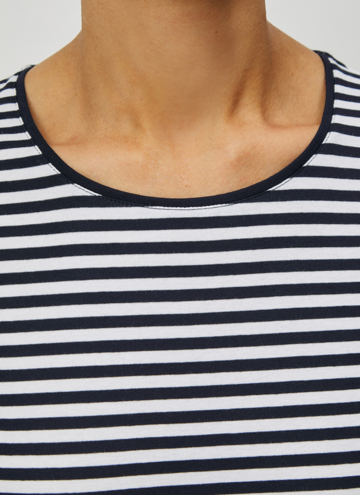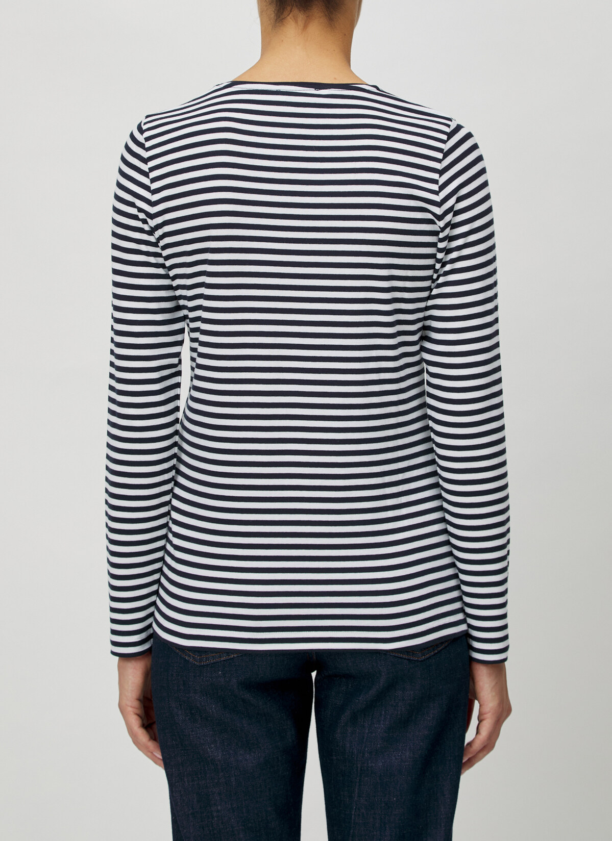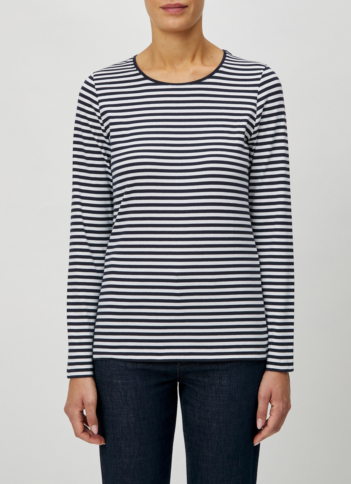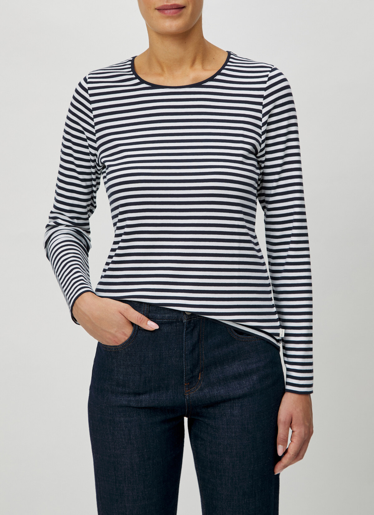 Longsleeve in Ringel-Dessin-Optik – eines unserer Lieblingsteile mit Rundhalsausschnitt. Material: Die Materialmischung aus Baumwolle und Elasthan macht es besonders bequem und pflegeleicht.Bleibt auch nach vielen Wäschen in seiner Form. Der Fit: figurbetont, feminin & bequem. Das Shirt überzeugt dank seiner hochwertigen Verarbeitung.