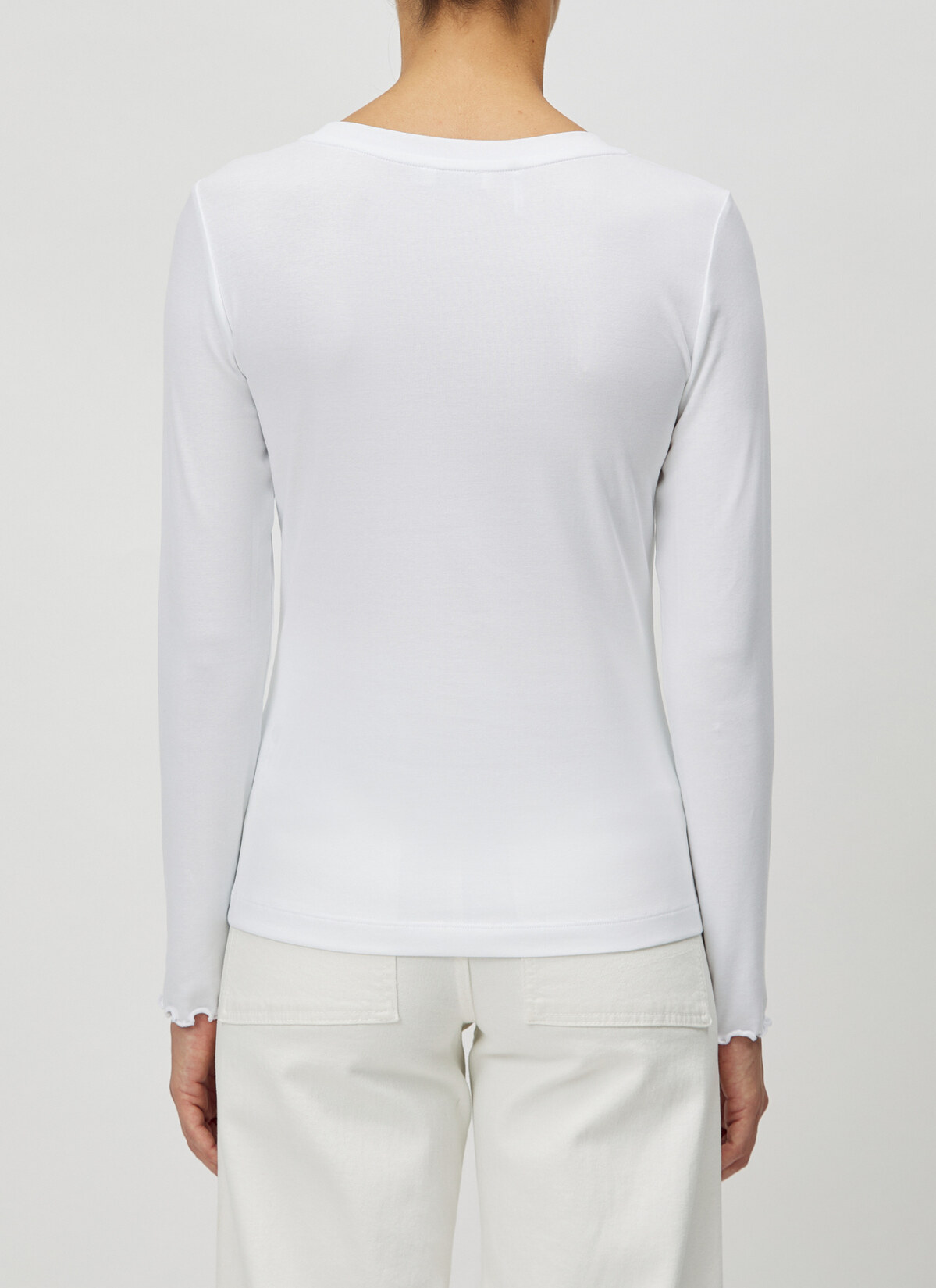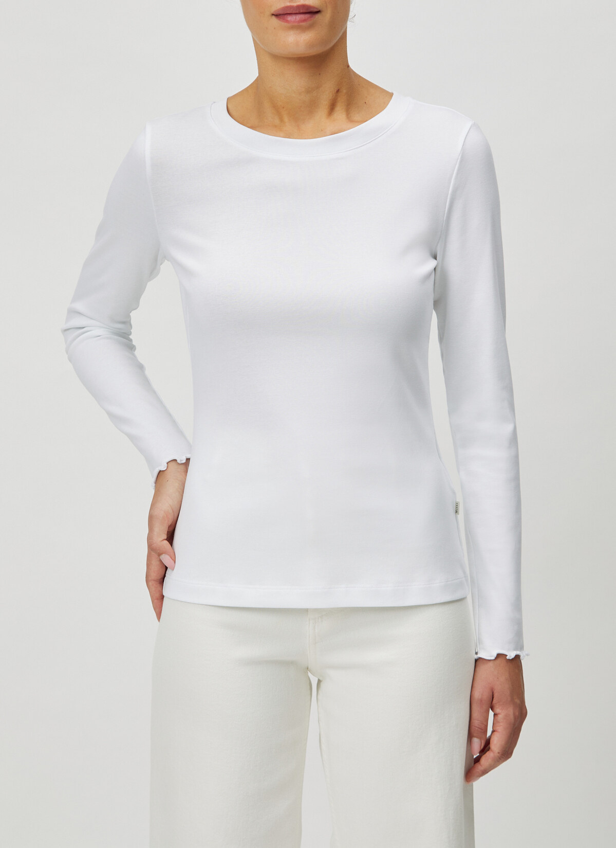 Lieblings-Produkt: Einfarbiges Longsleeve mit Rundhalsausschnitt und Muschelsaum am Ärmel. Die Materialmischung aus Baumwolle und Elasthan macht es besonders bequem und pflegeleicht. Das Shirt überzeugt dank seiner hochwertigen Verarbeitung. Bleibt auch nach vielen Wäschen in seiner Form. Der Fit: figurbetont, feminin & bequem.