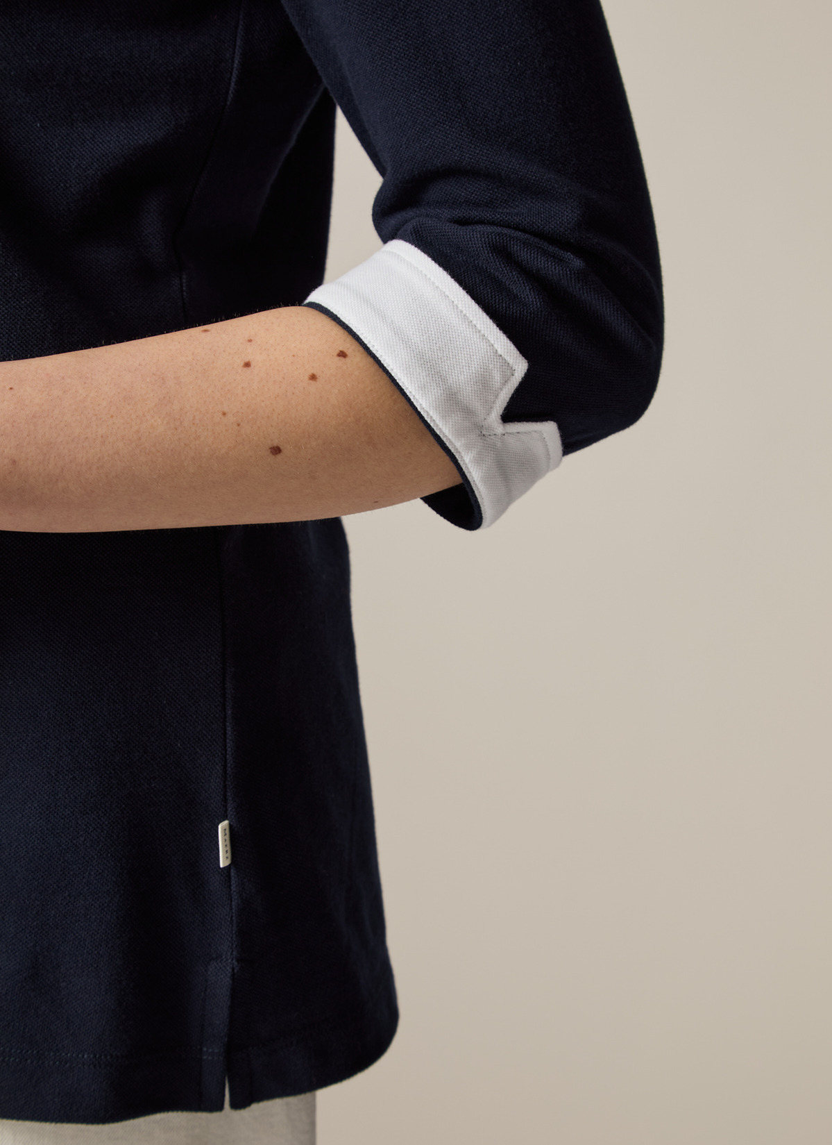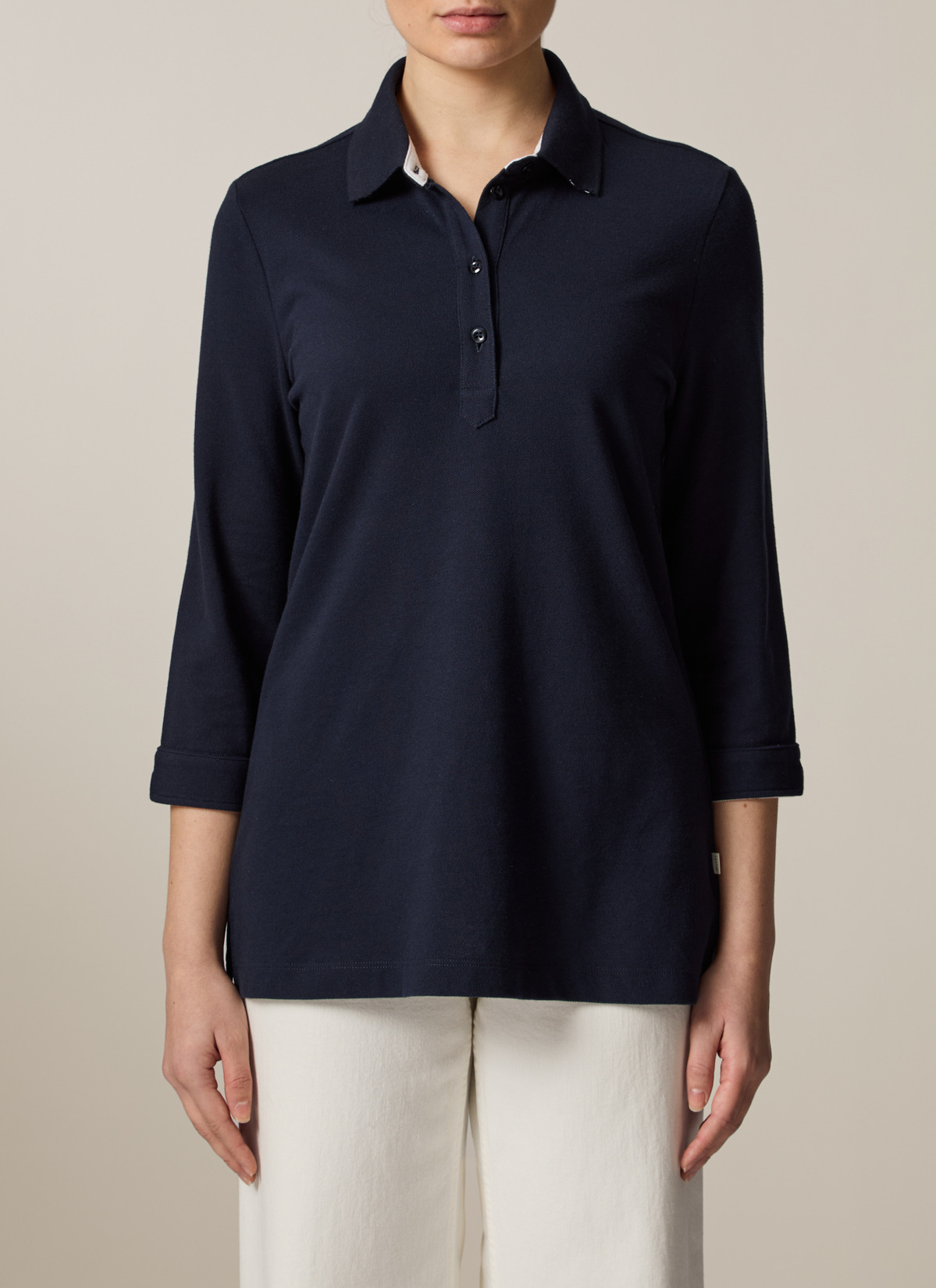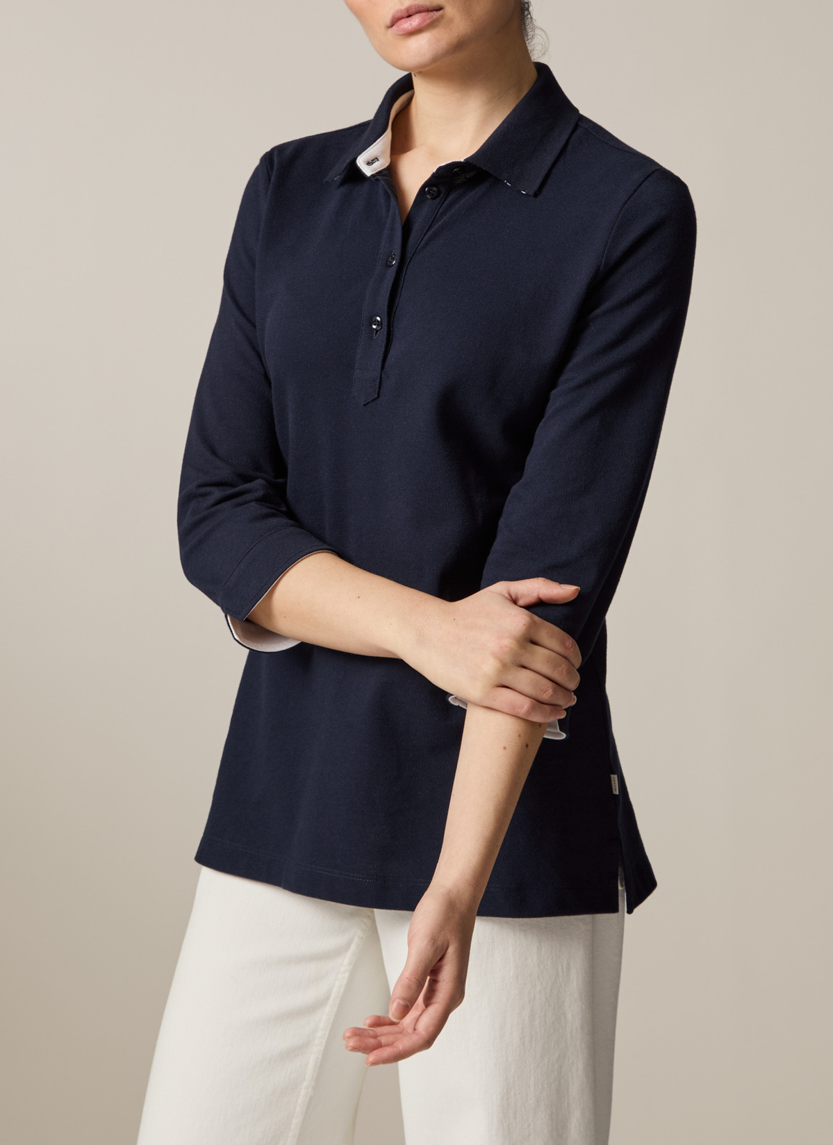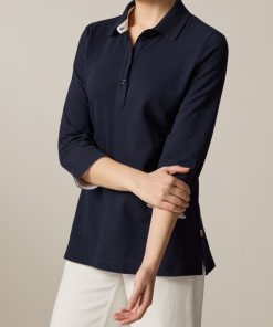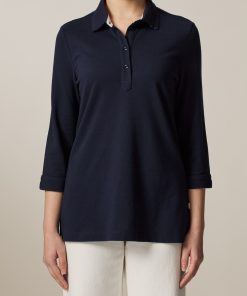 Feminines Poloshirt im klassischen Stil mit gewebtem Kragen undlanger schmaler Knopfleiste. Die Ärmel in dreiviertel Länge haben am Bundende einen kleinen angenehmen Schlitz. Material: das Poloshirt präsentiert sich klassisch in Piqué-Struktur. Die hochwertige Baumwolle ist besonders angenehm auf der Haut zu tragen und garantiert einen hohen Tragekomfort. Good to Know: Das Produkt ist zertifiziert nach Standard 100 by OEKO-TEX®.