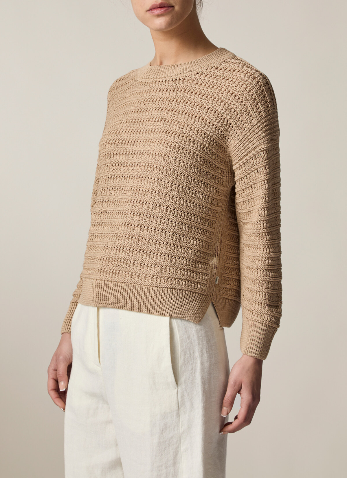 Der Pullover zeigt sich im Modern Fit mit Rundhalsausschnitt. Die überschnittenen Schultern sowie die Statement Struktur verleihen dem Pullover einen entspannten Look. Material: gefertigt aus merzerisierter Baumwolle ist der Pullover besonders hautfreundlich und besitzt einen edlen Glanz. Haptik:kühl und kernig im Griff. Styling-Tipp: einfach mit einem Lieblings Basic Shirt kombinieren.