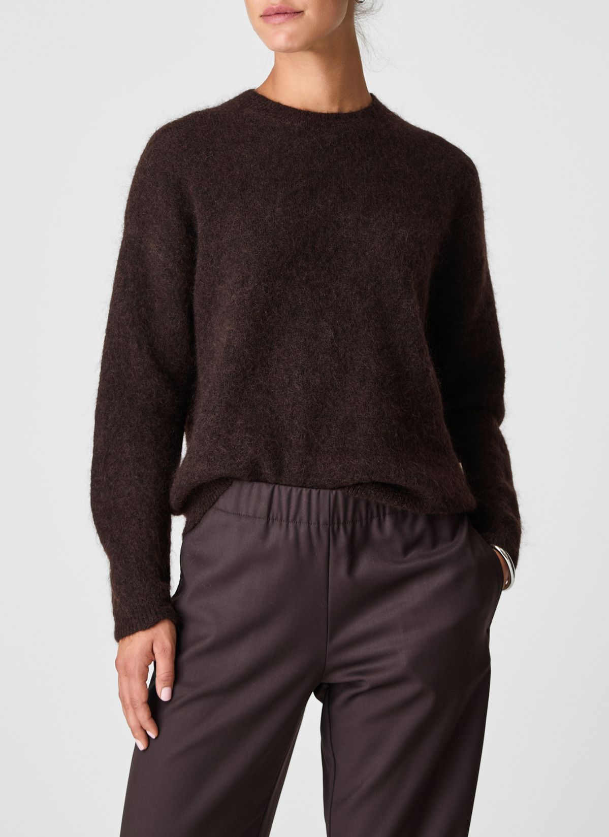 Dieser Pullover aus einer edlen Woll-Mohair-Mischung begeistert mit einer besonders weichen Haptik und flauschiger, luxuriöser Optik. Der Oversized Fit mit überschnittenen Schultern sorgt für eine moderne, lässige Silhouette, die gleichzeitig stilvoll und komfortabel wirkt. Trotz seiner weichen Struktur überzeugt das Modell durch Formstabilität und eine elastische Qualität, die ihre Form auch bei regelmäßigem Tragen bewahrt. Die fein strukturierte Oberfläche verleiht dem Pullover eine leichte, feminine Ausstrahlung und macht ihn zu einem vielseitigen Begleiter. Ein stilvolles Lieblingsstück mit hochwertigem Tragegefühl für entspannte und dennoch gepflegte Looks.