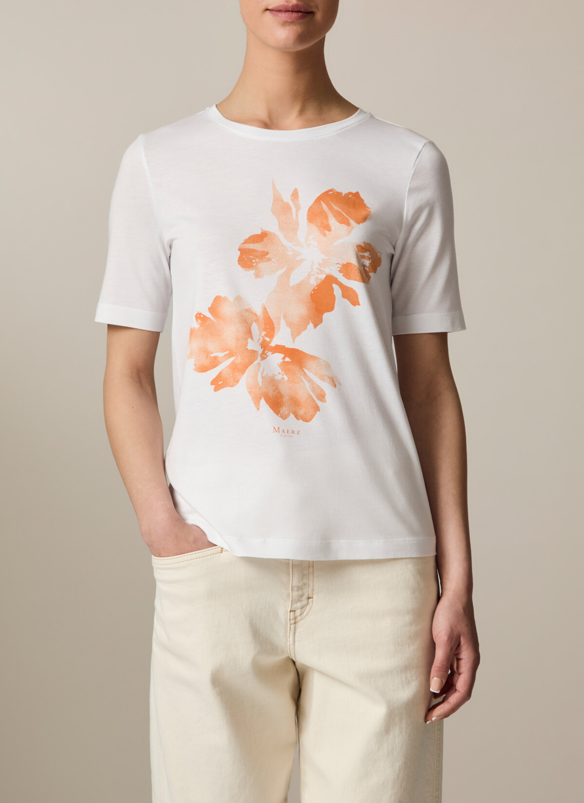 Basic Shirt mit femininem Charme! Das Rundhalsshirt im Regular Fit besticht durch sein einzigartiges florales Statement Motiv auf der Vorderseite. Material: Material: Gefertigt aus Single-Jersey in einer Baumwoll-Modal Mischung ist das Shirt weich, atmungsaktiv und feuchtigkeitsregulierend. Haptik: glatt und angenehm auf der Haut.
