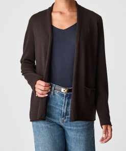 Kuschelig weiche Geelong-Wolle! Offene Strickjacke mit zwei aufgesetzten Taschen und hochwertiger Geelong Qualität. Material: die hochwertige Geelong-Wolle ist mulesingfrei und wird in Italien zum Premiumgarn versponnen. Haptik: klassisches Maschenbild mit leichtem und softem Wollgriff. Tragegefühl: leicht und angenehm wärmend. Hochwertige Verarbeitung mit handgekettelten Nähten und elastischen Bündchen. Styling-Tipp: ganz nach dem Motto „Ton in Ton“ kombiniert man aktuell mehrere Strickteile in einem Outfit.