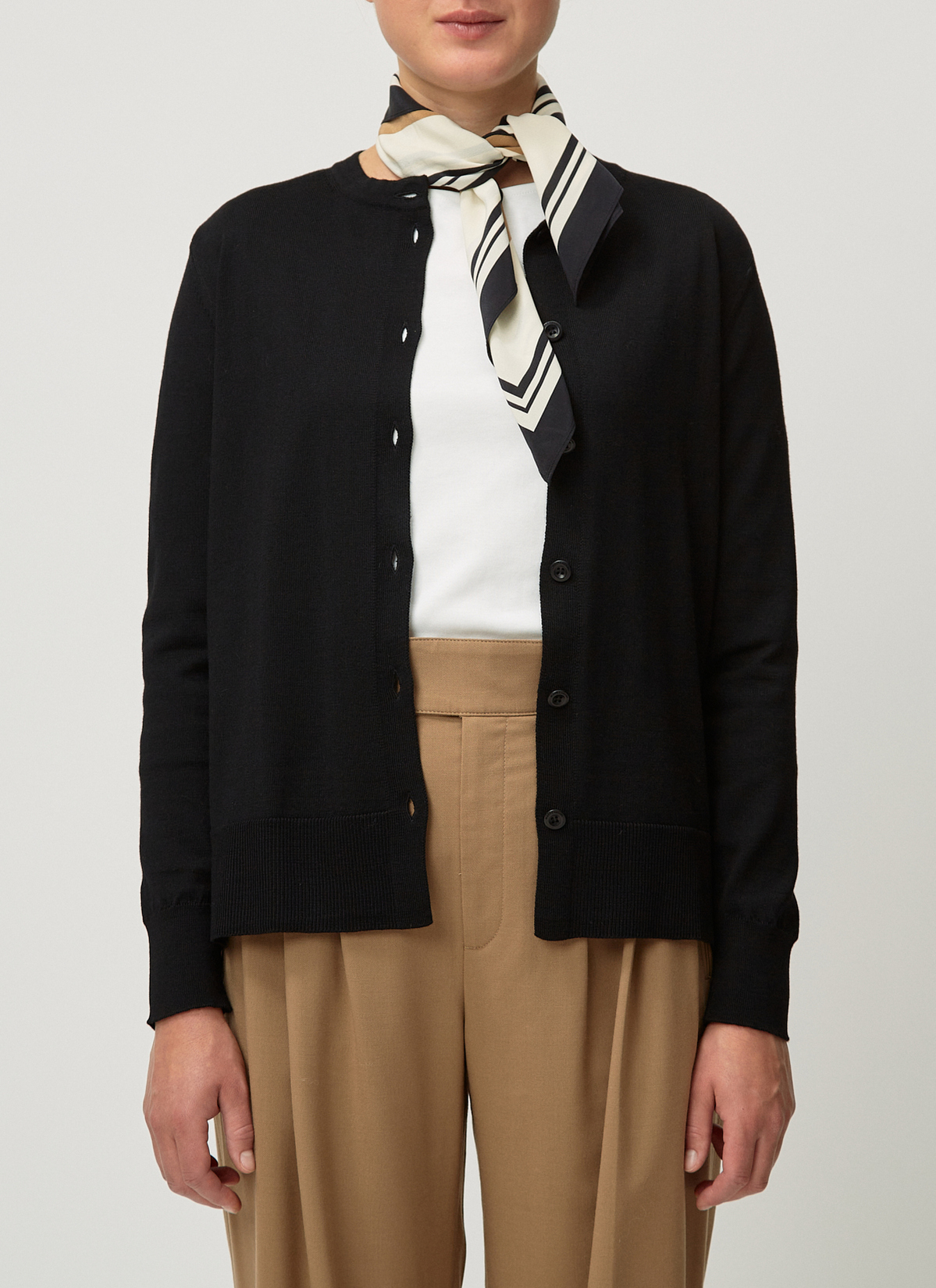 Der moderne Klassiker – überzeugt vor allem durch das klassische Design und die hochwertig verarbeitete Merinowolle. Die kleinen Schlitze an den Seiten und die Rippbündchen an Ärmeln und Bundenden, verleihen der Strickjacke eine besondere Note. Material: Merinowolle hat einen hohen Tragekomfort, ist feuchtigkeitsregulierend, geruchsneutral und besitzt eine wärmende sowie temperaturausgleichende Funktion. Haptik: cleanes, klassisches Maschenbild mit weichem Wollgriff. Hochwertige Verarbeitung mit handgekettelten Nähten und elastischen Bündchen.