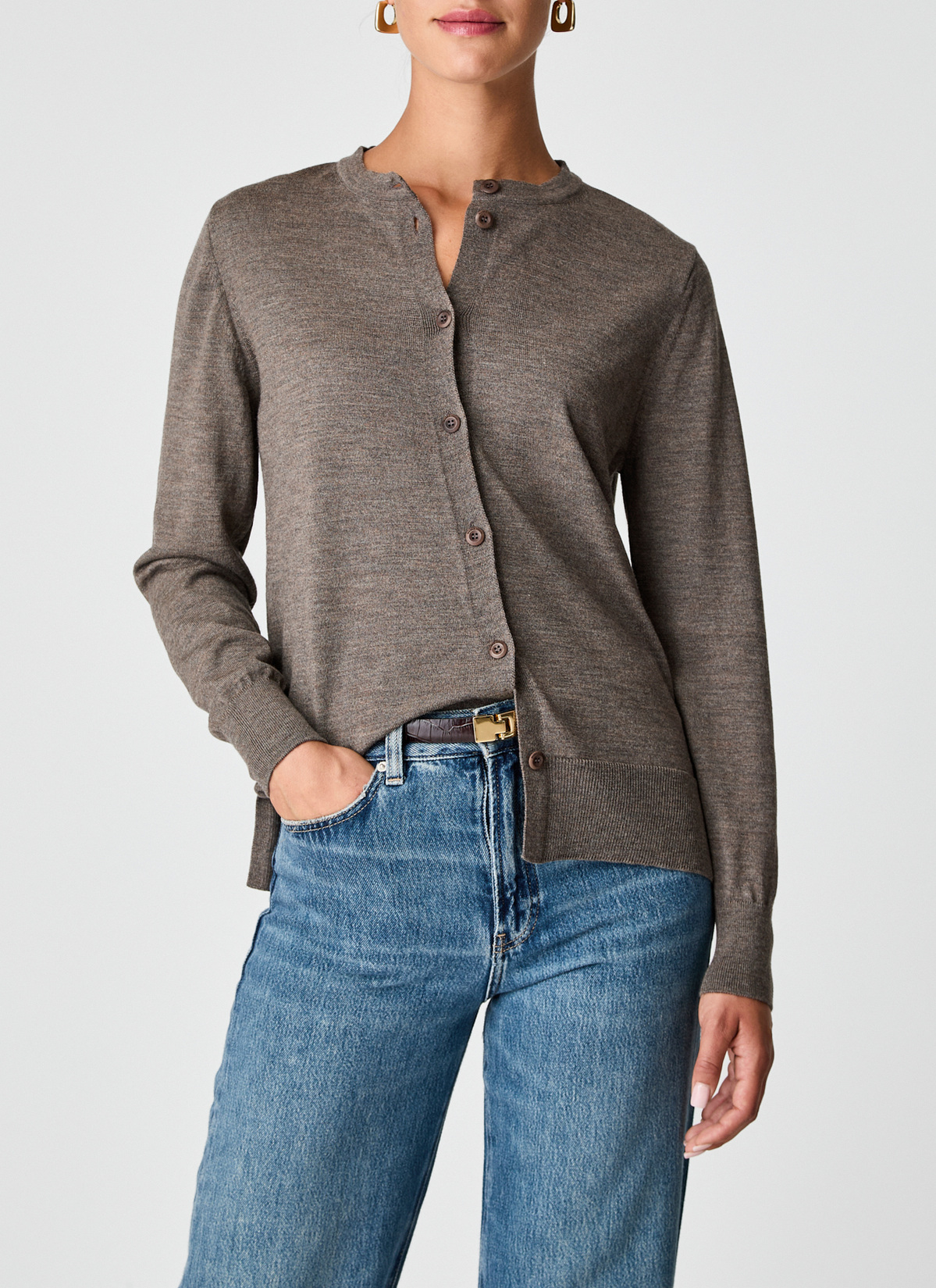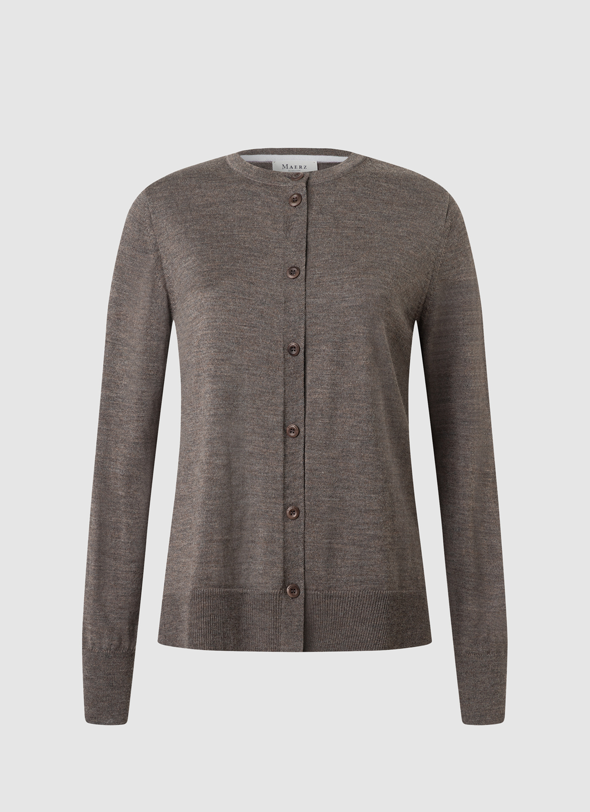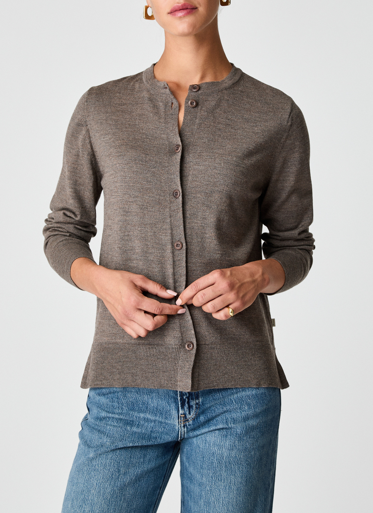Der moderne Klassiker – überzeugt vor allem durch das klassische Design und die hochwertig verarbeitete Merinowolle. Die kleinen Schlitze an den Seiten und die Rippbündchen an Ärmeln und Bundenden, verleihen der Strickjacke eine besondere Note. Material: Merinowolle hat einen hohen Tragekomfort, ist feuchtigkeitsregulierend, geruchsneutral und besitzt eine wärmende sowie temperaturausgleichende Funktion. Haptik: cleanes, klassisches Maschenbild mit weichem Wollgriff. Hochwertige Verarbeitung mit handgekettelten Nähten und elastischen Bündchen.