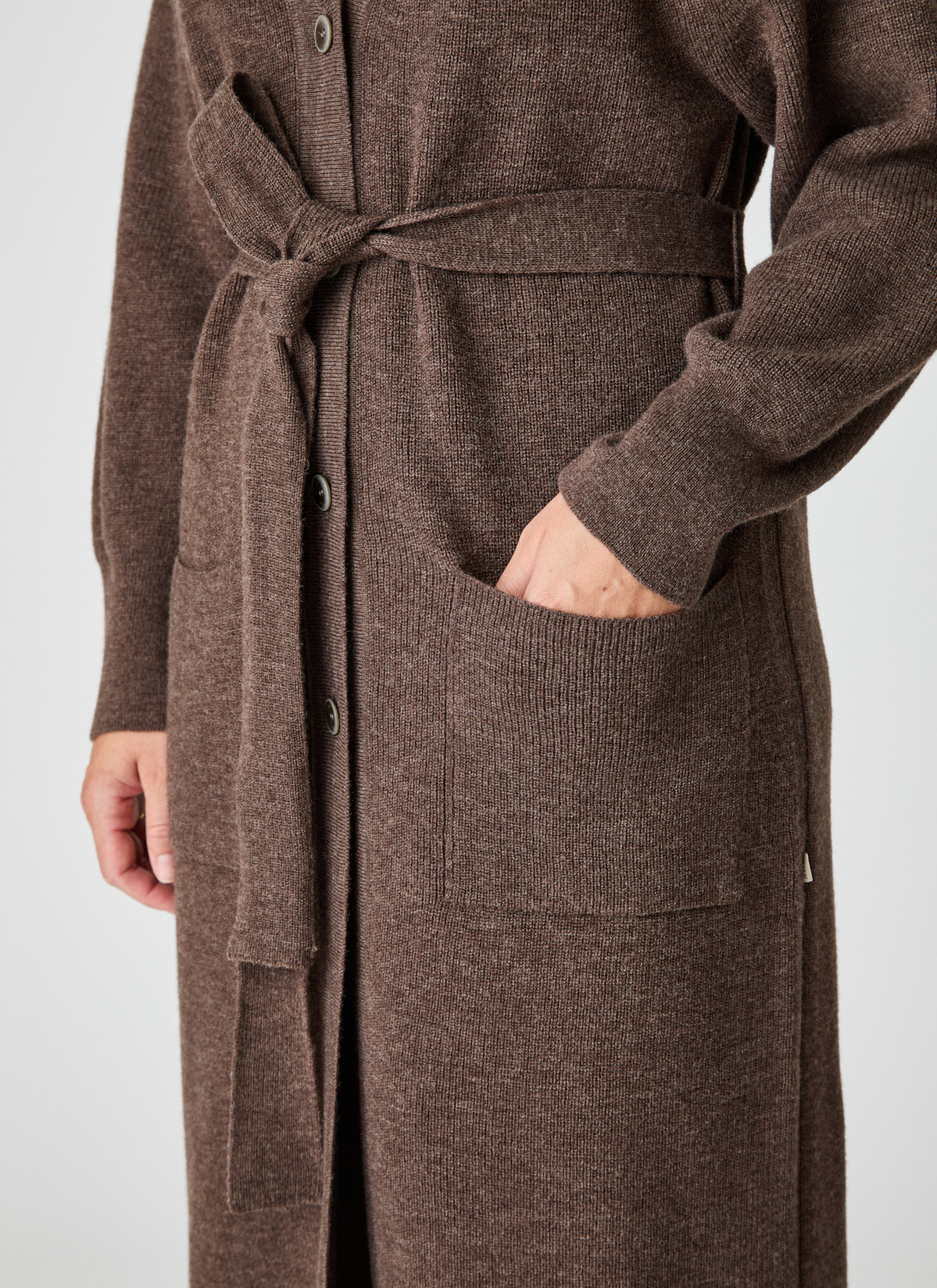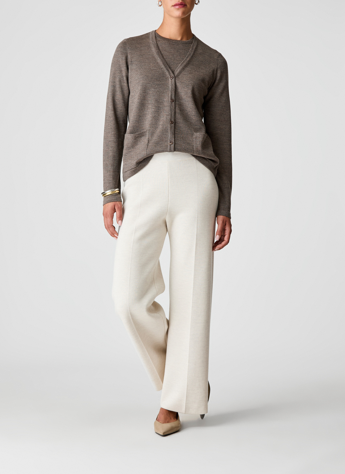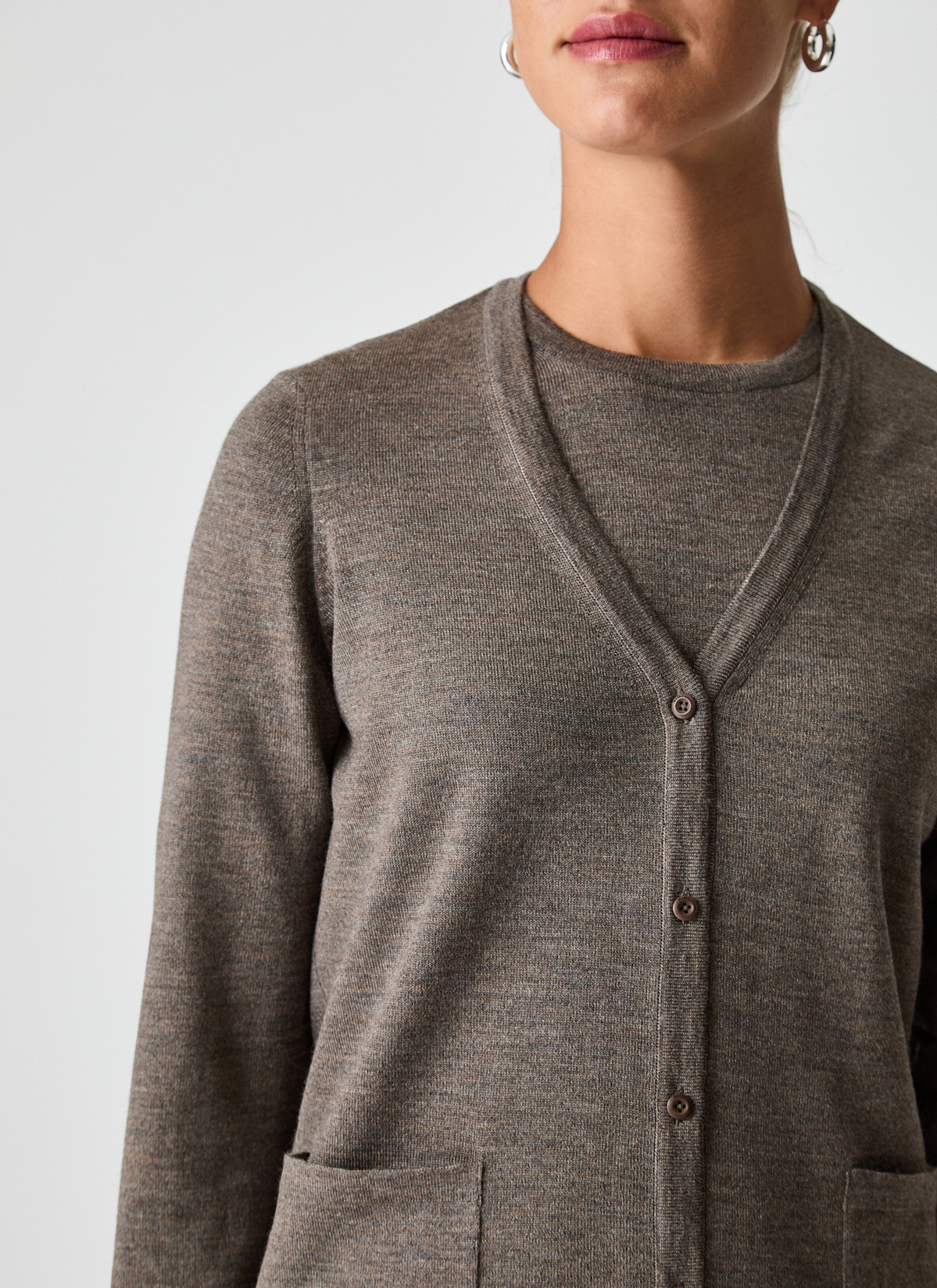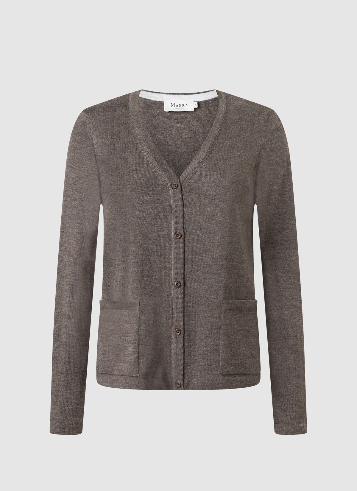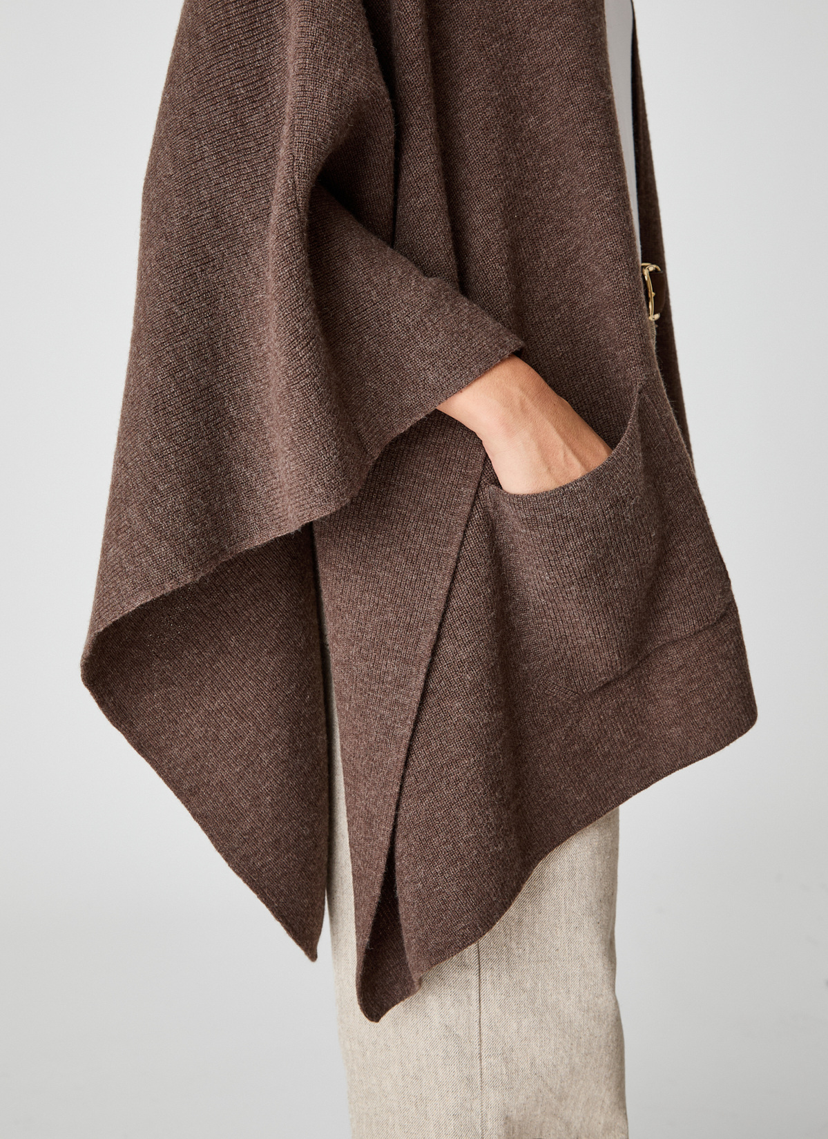 Diese Strickjacke in moderner Cape-Optik besticht durch ihren legeren Oversized Fit und den edlen Perlfang-Strick aus 100 % extrafeiner Merinowolle. Die strukturierte Oberfläche verleiht dem Modell eine besondere Tiefe und einen stilvollen Look. Die hochwertige Merinowolle ist angenehm weich, temperaturausgleichend und atmungsaktiv, wodurch sie ideal für vielseitige Einsätze geeignet ist. Zwei aufgesetzte Taschen auf der Vorderseite setzen praktische und optische Akzente. Die fließende Form unterstreicht den entspannten Charakter und sorgt für maximalen Tragekomfort.