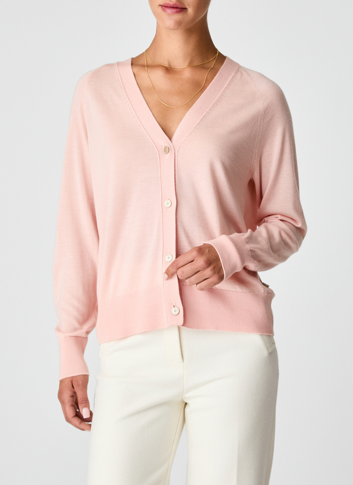 Diese Damen Strickjacke verbindet modernen Komfort mit edler Materialqualität. Die locker geschnittene Passform mit überschnittenen Schultern und leicht voluminösem Schnitt sorgt für einen lässig-eleganten Look. Zarte Pointelle-Muster an den Ärmeln setzen feine Akzente und unterstreichen die feminine Ausstrahlung. Die hochwertige Mischung aus Merinowolle, Seide und Kaschmir ist angenehm leicht, temperaturregulierend und wirkt kühlend auf der Haut – ideal für warme Tage und laue Abende. Sie fühlt sich außergewöhnlich weich und glatt an und sorgt den ganzen Tag über für höchsten Tragekomfort. Ein vielseitiges Lieblingsstück für stilvolle Auftritte bei jeder Gelegenheit.