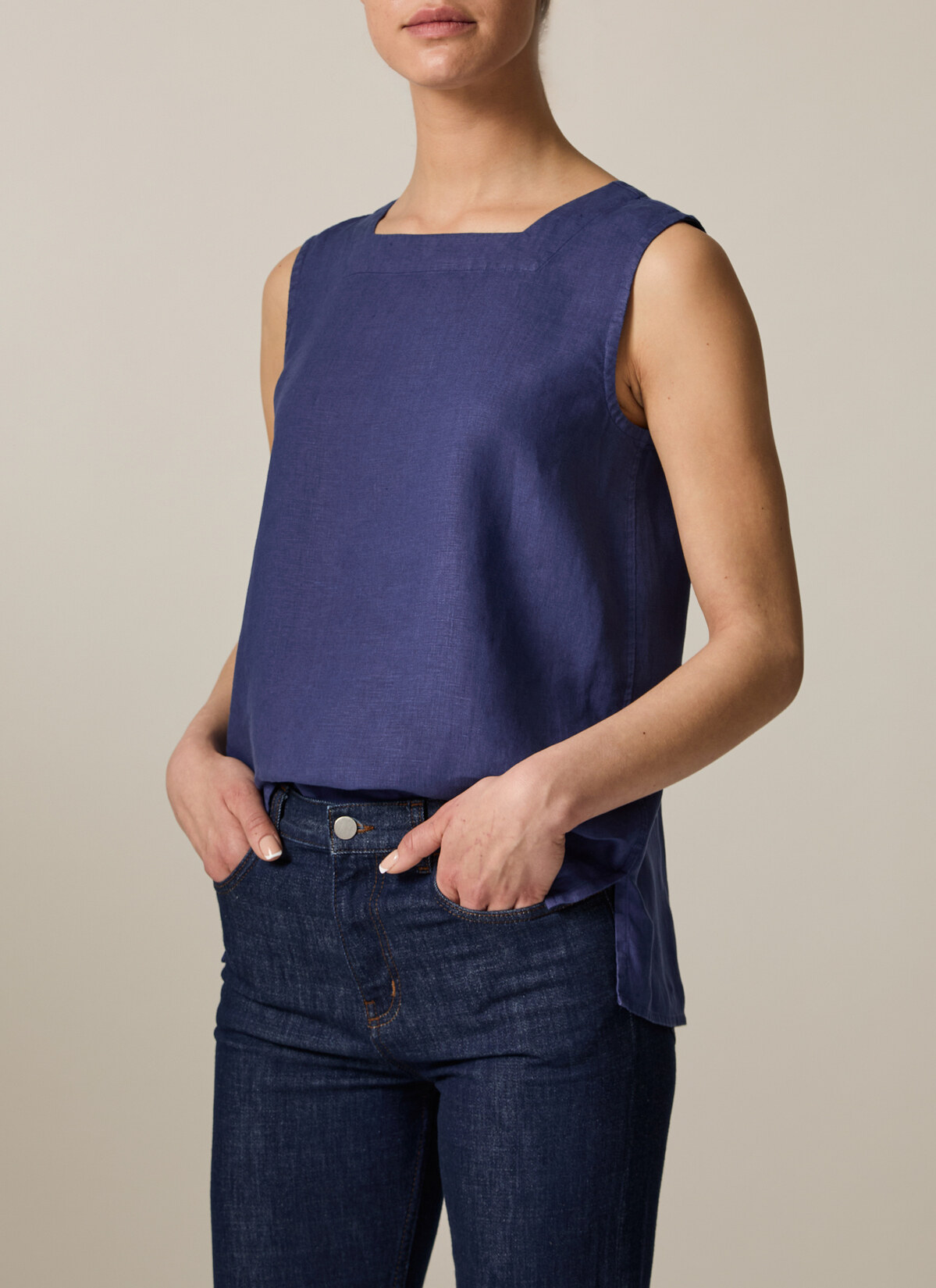 Das Top im Modern Fit zeigt sich mit geometrischem Ausschnitt sowie einer femininen Kellerfalte auf der Rückseite. Material: gefertigt aus Leinen ist das Top wunderbar kühlend und atmungsaktiv. Haptik: kernig und kühl im Griff. Styling-Tipp: kombiniert im Set mit der passenden Shorts (Art.Nr.:162200)wirkt der Look besonders harmonisch. Good to know: durch den Garment Dye Färbeprozess ist jedes Stück ein Unikat.